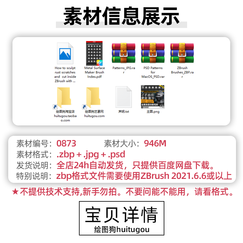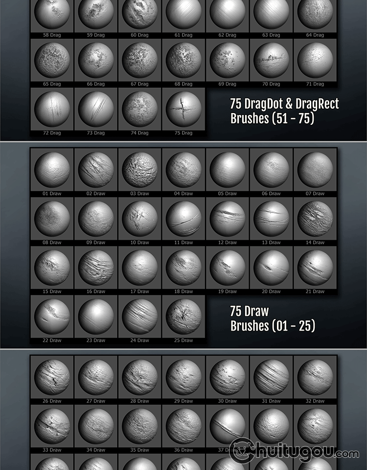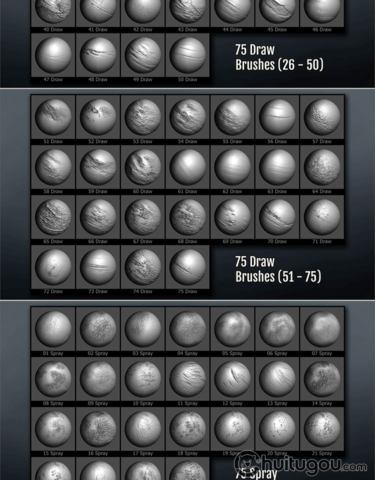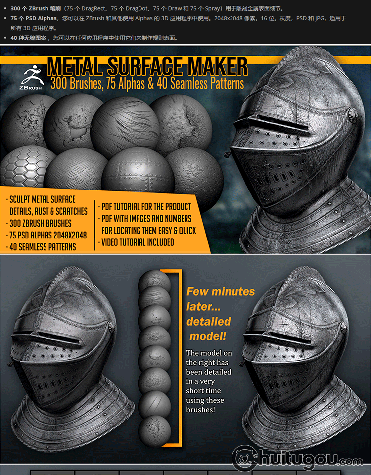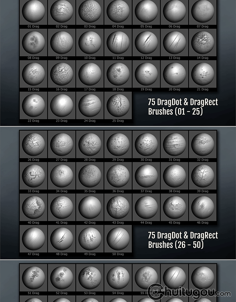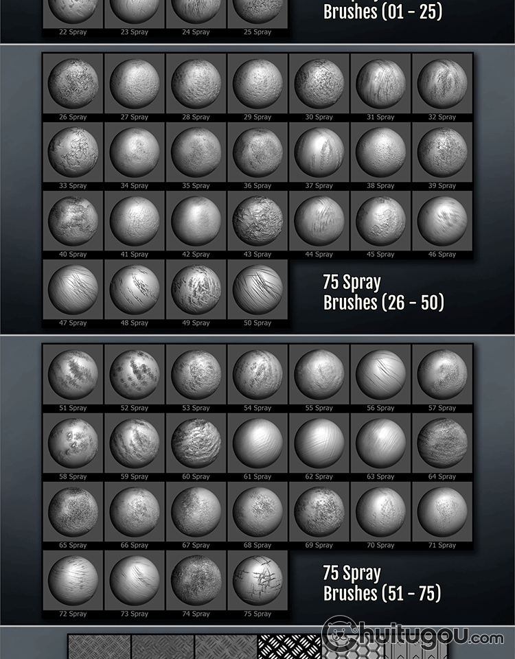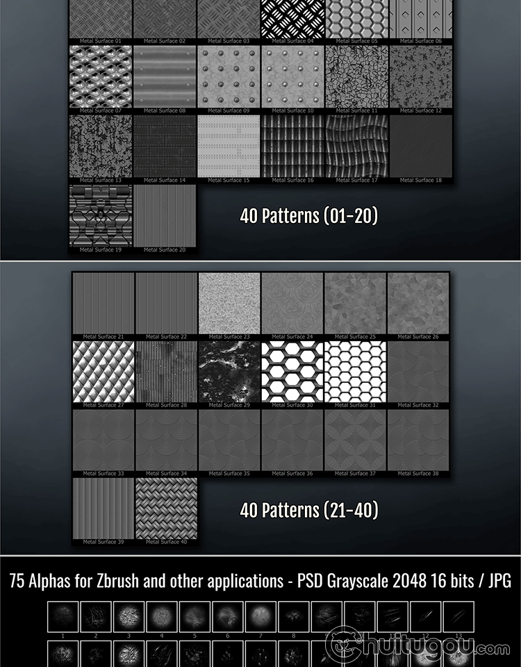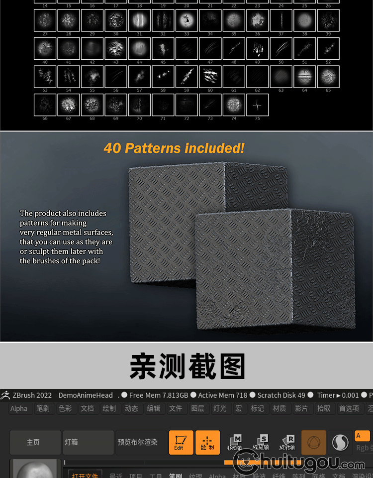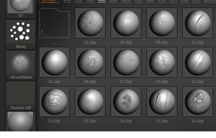 ZBrush素材50款金属磨损破损战损细节雕刻ZBP笔刷alpha纹理ZB建模