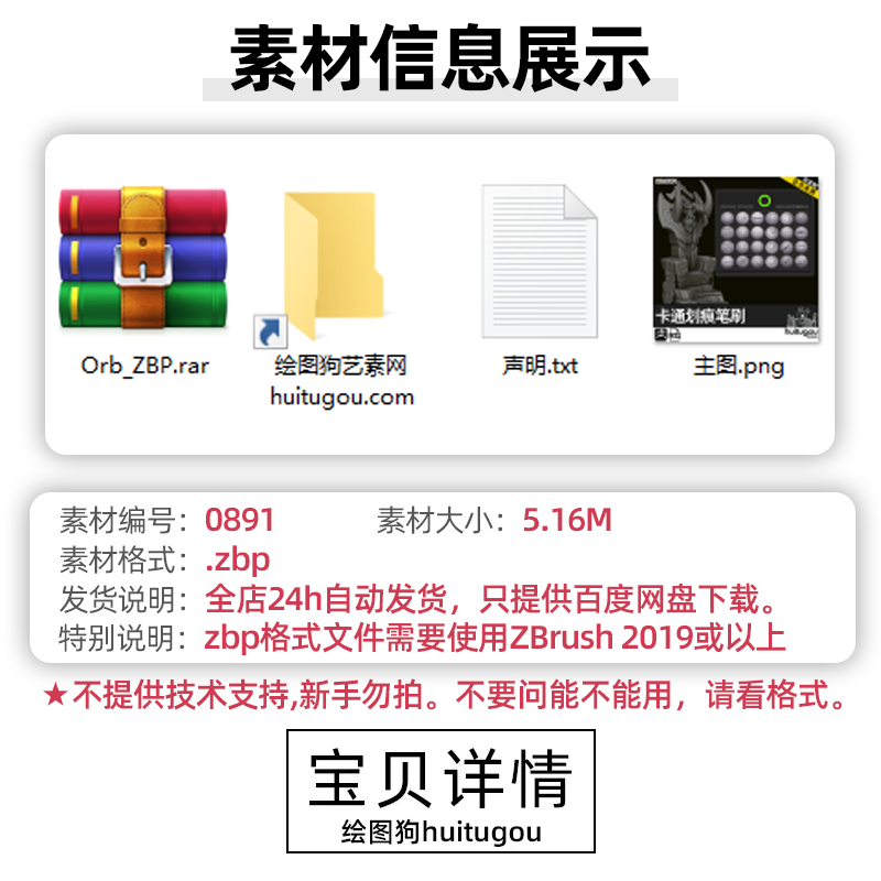 Zbrush卡通风格毛发皮毛胡子头发VDM笔刷zbp画笔 ZB雕刻建模素材
