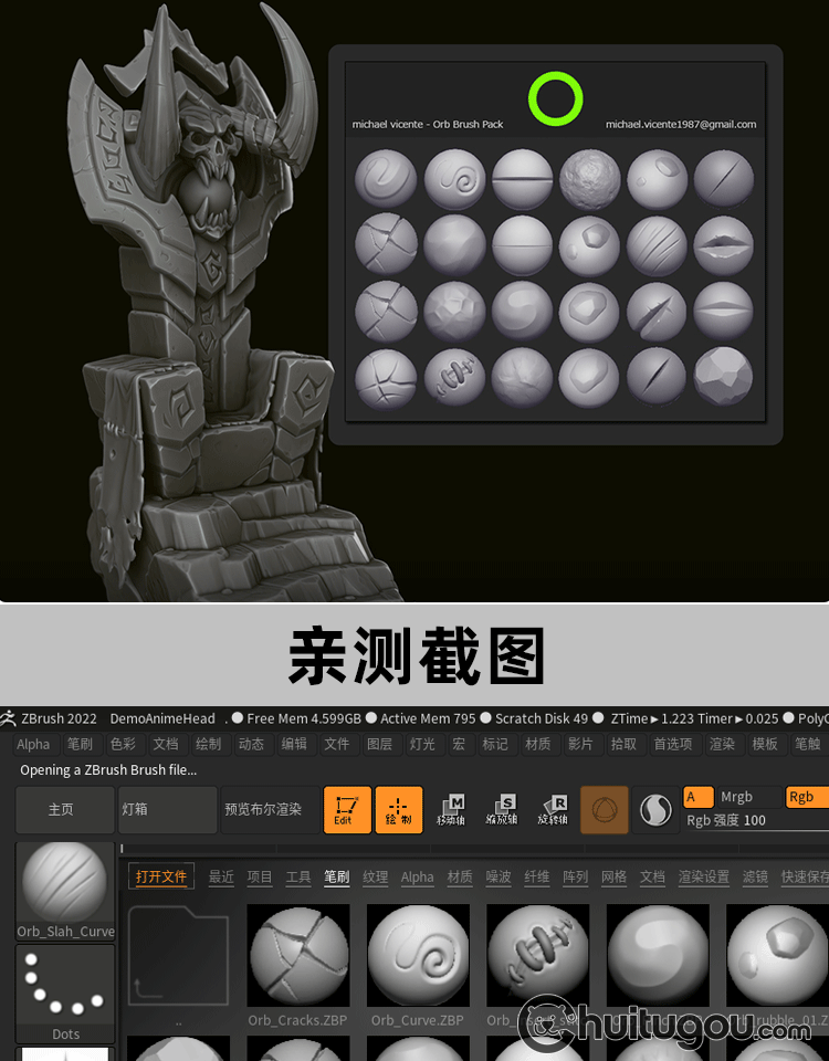 ZBrush卡通风格化模型表面雕刻笔刷zb画笔 石头金属裂缝划痕纹理