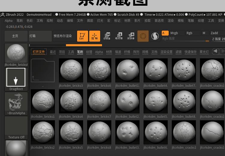 Zbrush金属锻造表面损坏铆钉划痕破损zbp笔刷ZB画笔Alpha纹理贴图