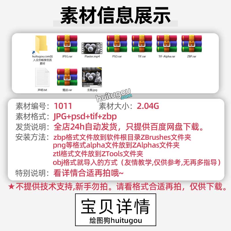 ZBrush石膏雕像表面细节zbp笔刷墙体裂痕做旧alpha画笔ZB雕刻素材