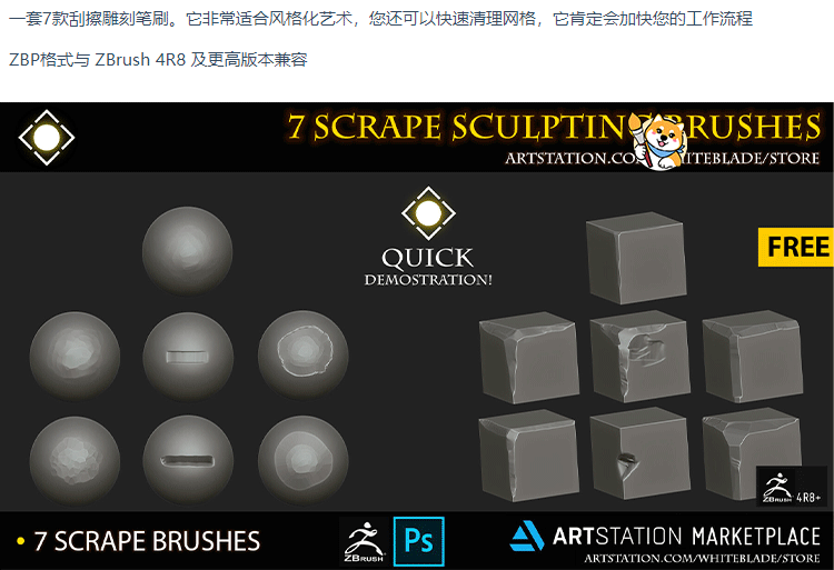 ZBrush笔刷7款边沿剐蹭刮擦破损风格化zbp格式笔刷ZB建模雕刻素材