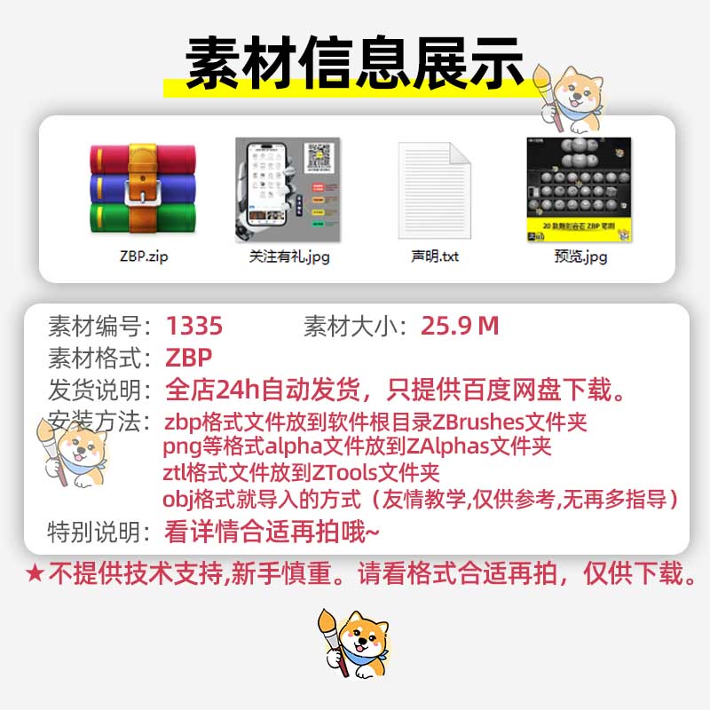 ZBrush笔刷7款边沿剐蹭刮擦破损风格化zbp格式笔刷ZB建模雕刻素材