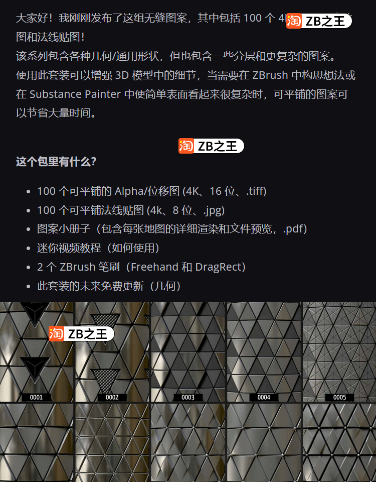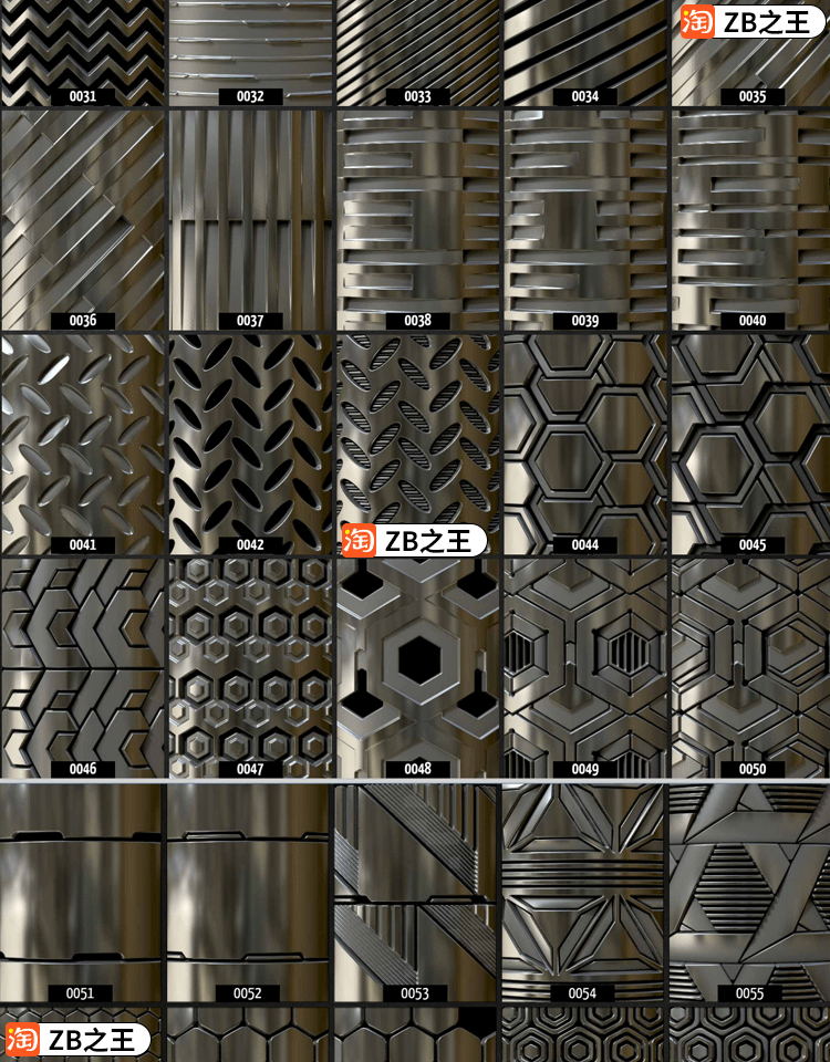 ZBrush笔刷100款几何图案无缝平铺科幻Alpha笔刷zbp素材tif贴图包