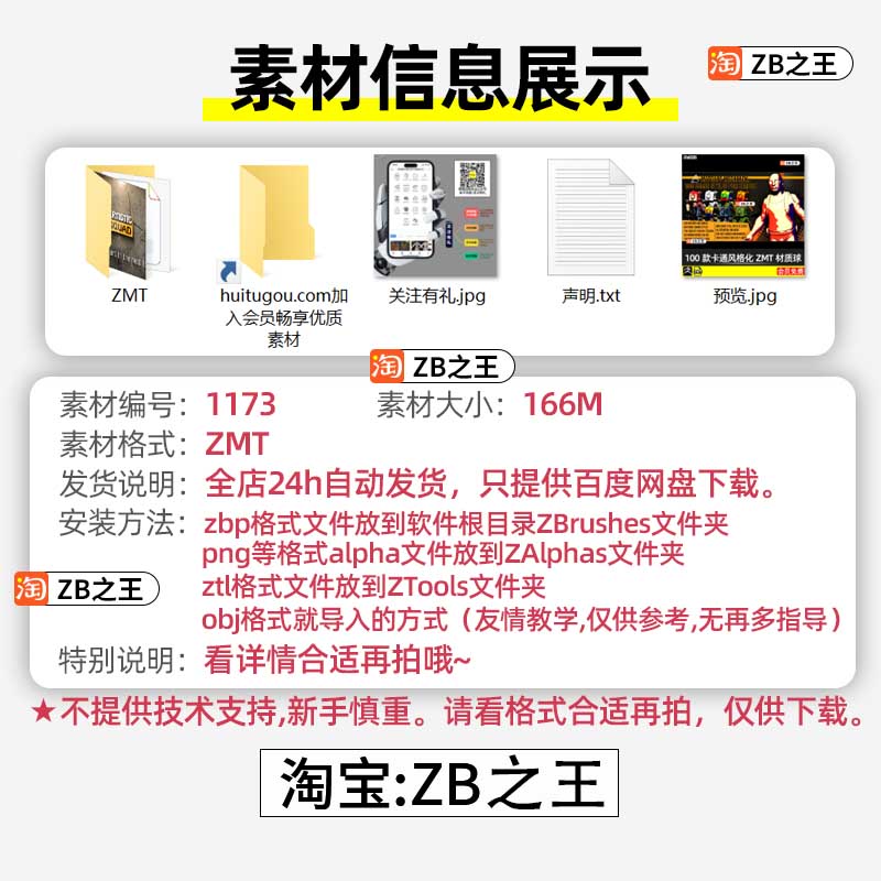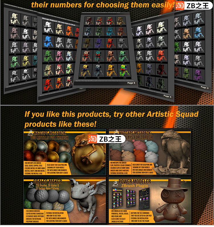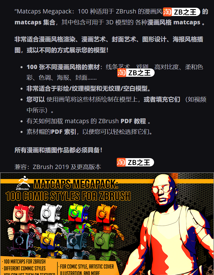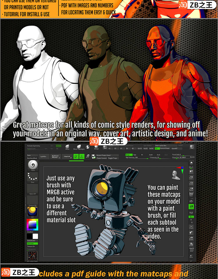 ZBrush材质100款漫画动漫卡通艺术反差调色风格化ZMT材质球ZB素材