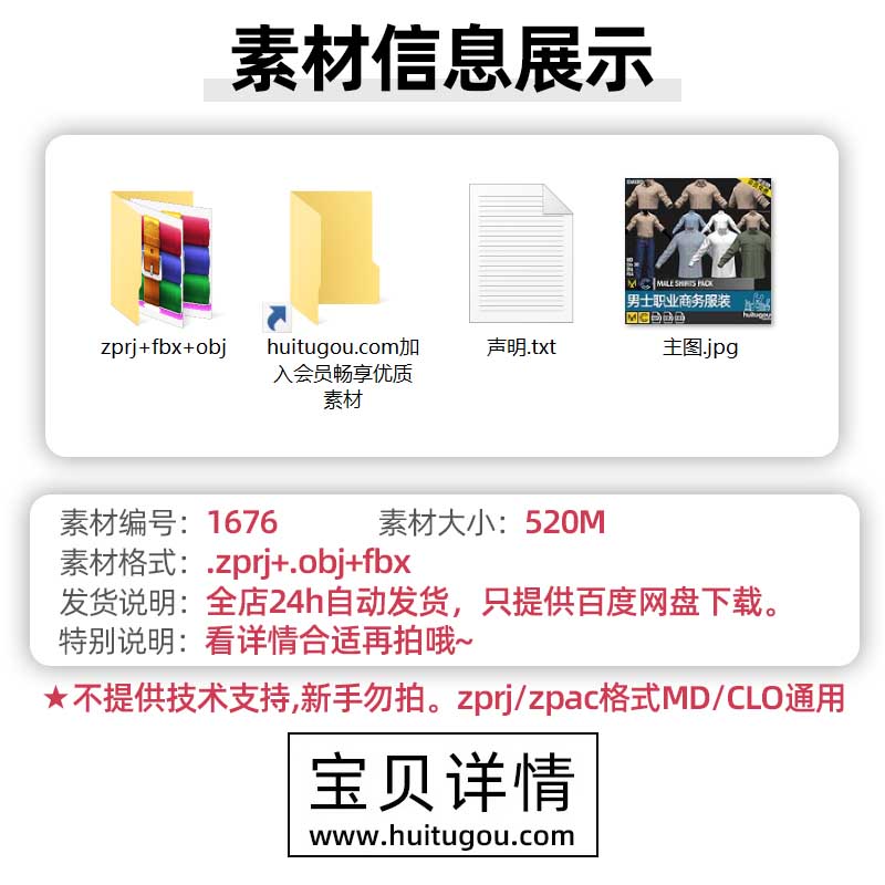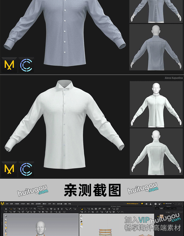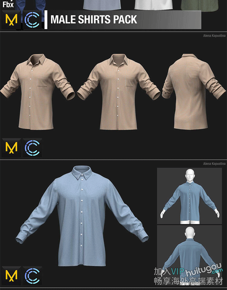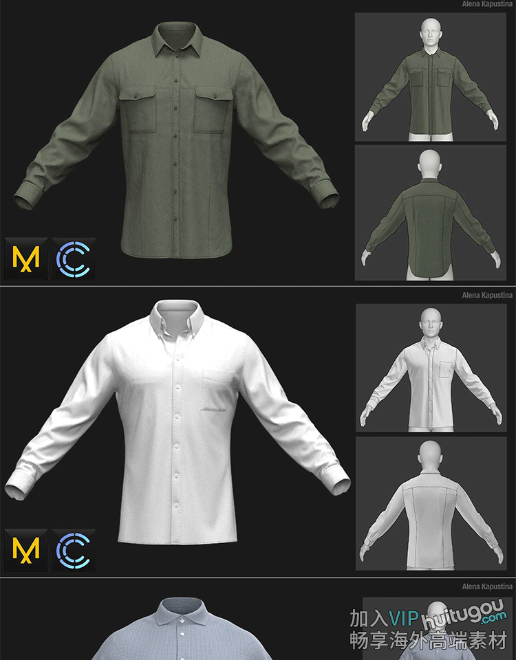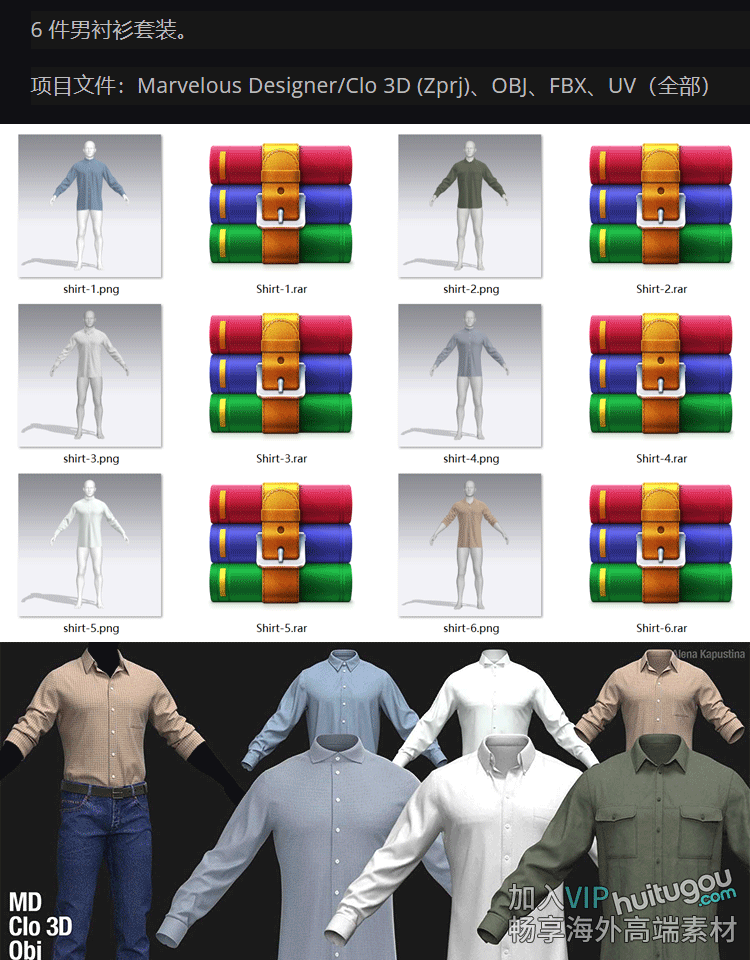 6款商务风格男士衬衫模型MD衣服素材Clo3d服装zprj项目FBX模型OBJ