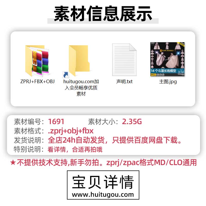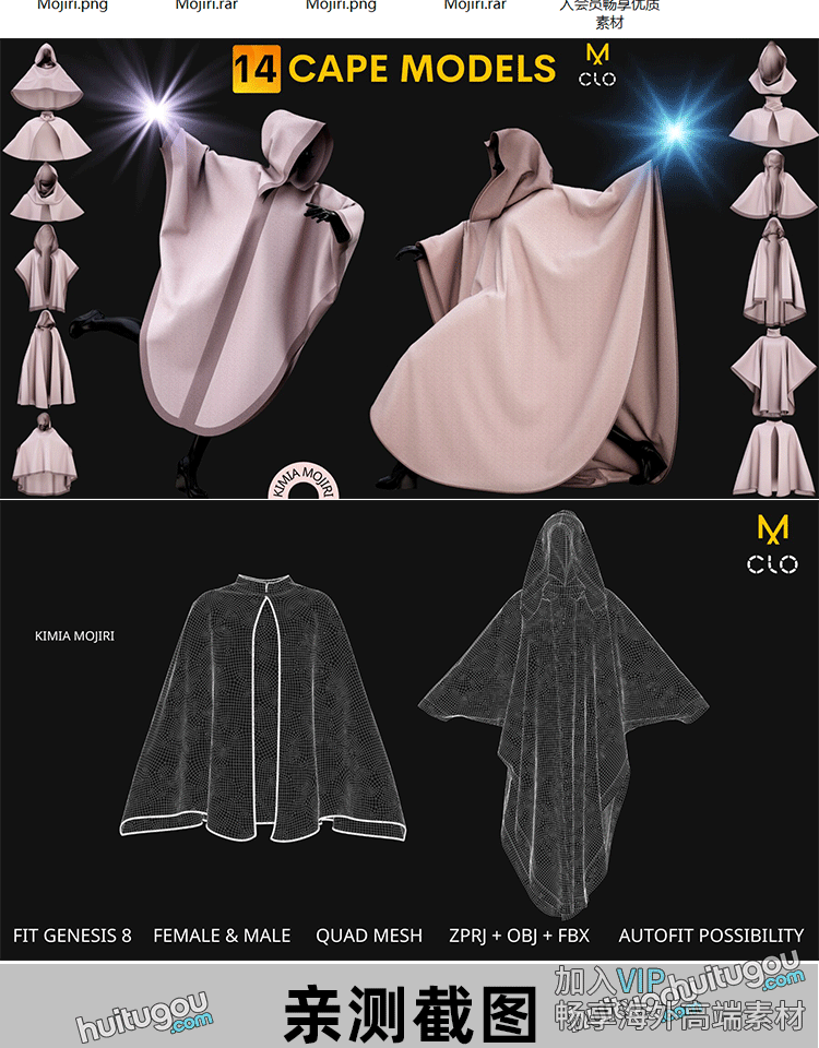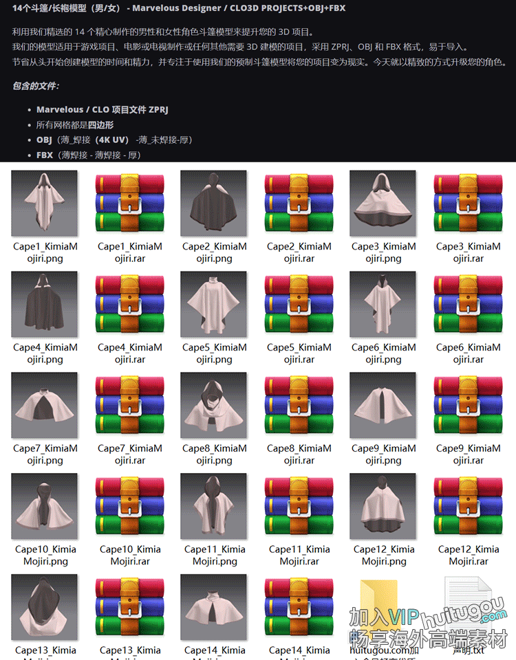 MD衣服素材Clo3D男女斗篷披风服装打版基础工程文件3D模型fbx obj