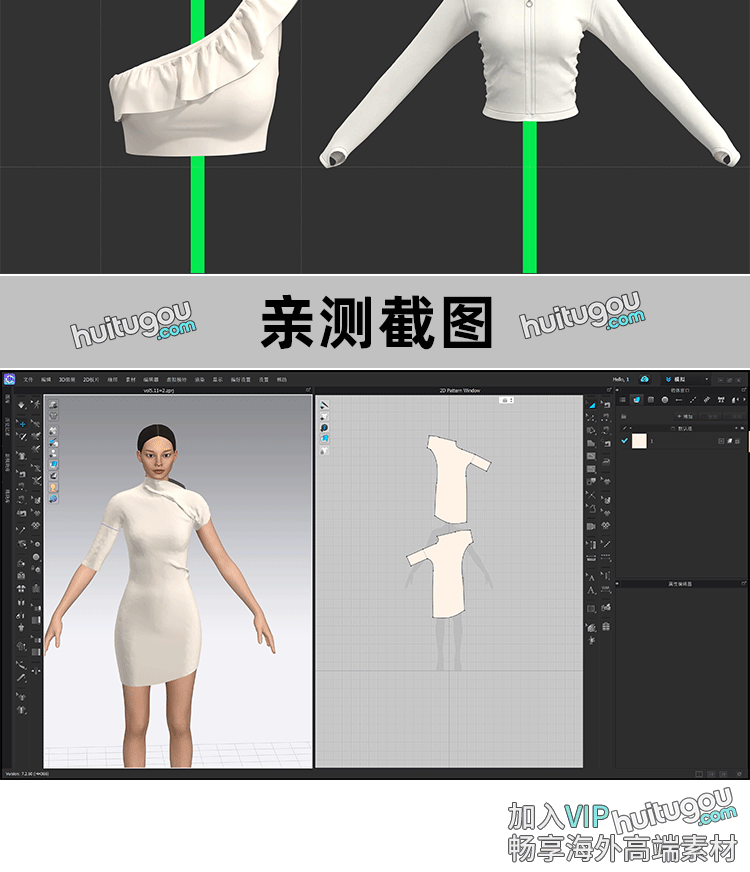 MD服装纸样素材clo欧美时尚女装上衣露肩吊带衣服打版工程源文件