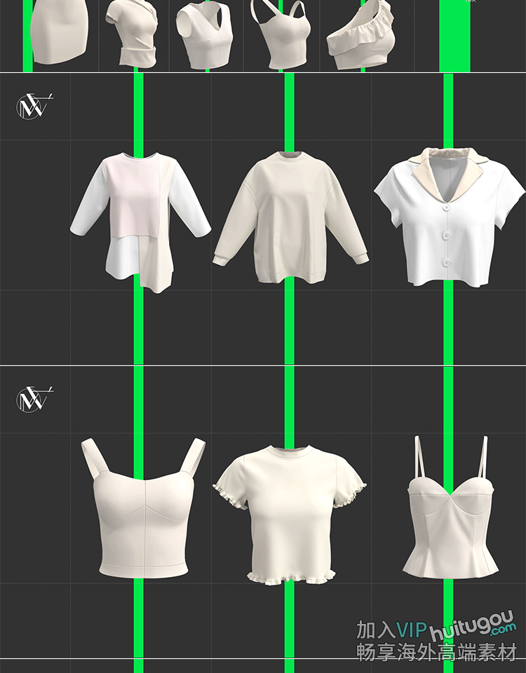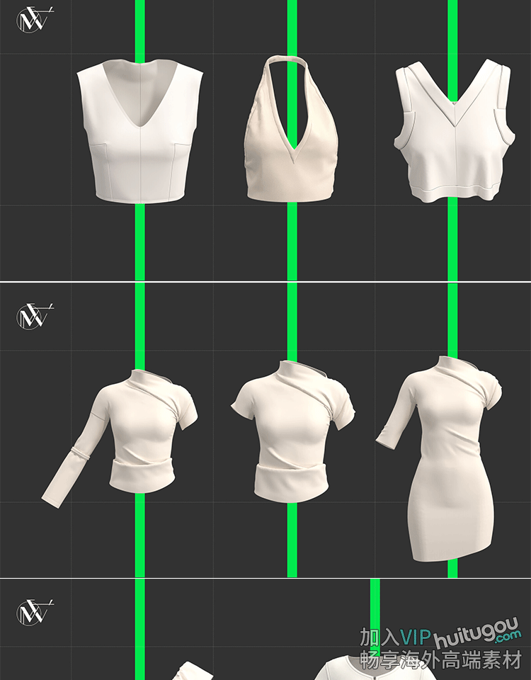 CLO3D建模素材MD服装纸样5款女式上衣肚兜吊带衣服工程ZPRJ源文件