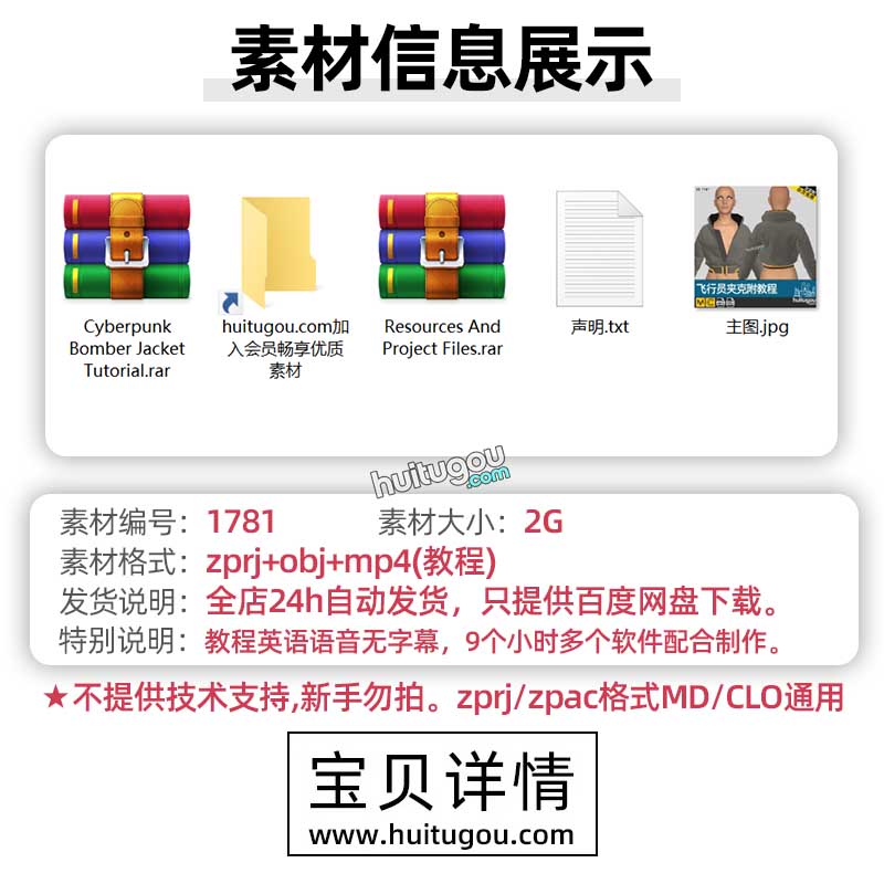 CLO衣服素材MD科幻连体衣服装纸样工程源文件带建模打版视频教程