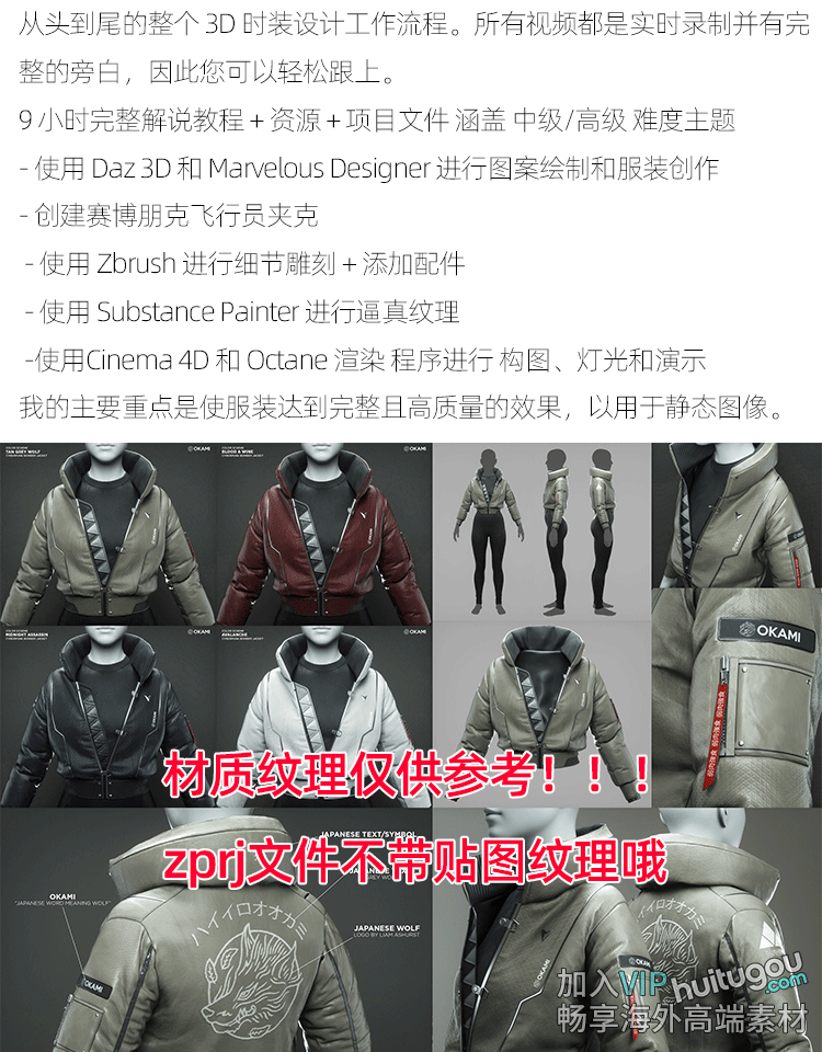 MD服装CLO飞行员夹克纸样工程源文件带打版雕刻绘制纹理雕刻教程