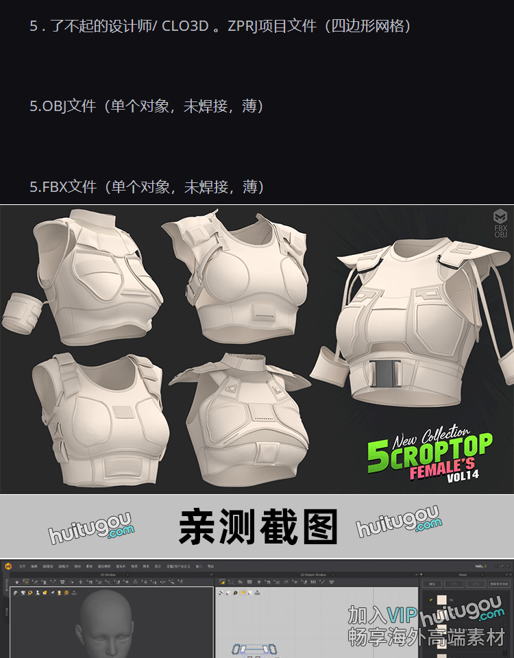 MD衣服素材CLO3D美少女战术上衣基础版型5款服装设计纸样工程文件
