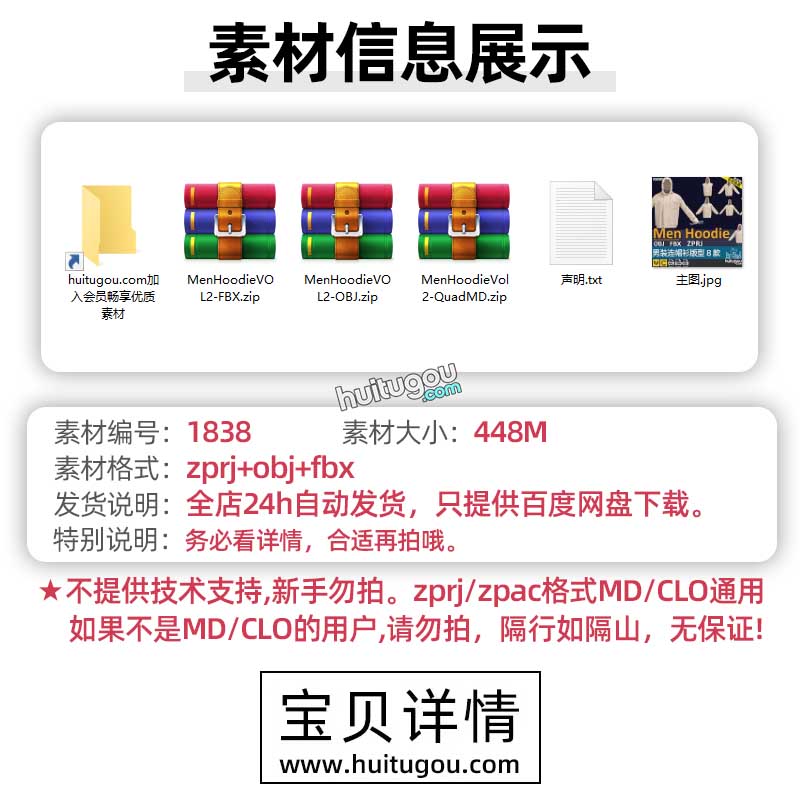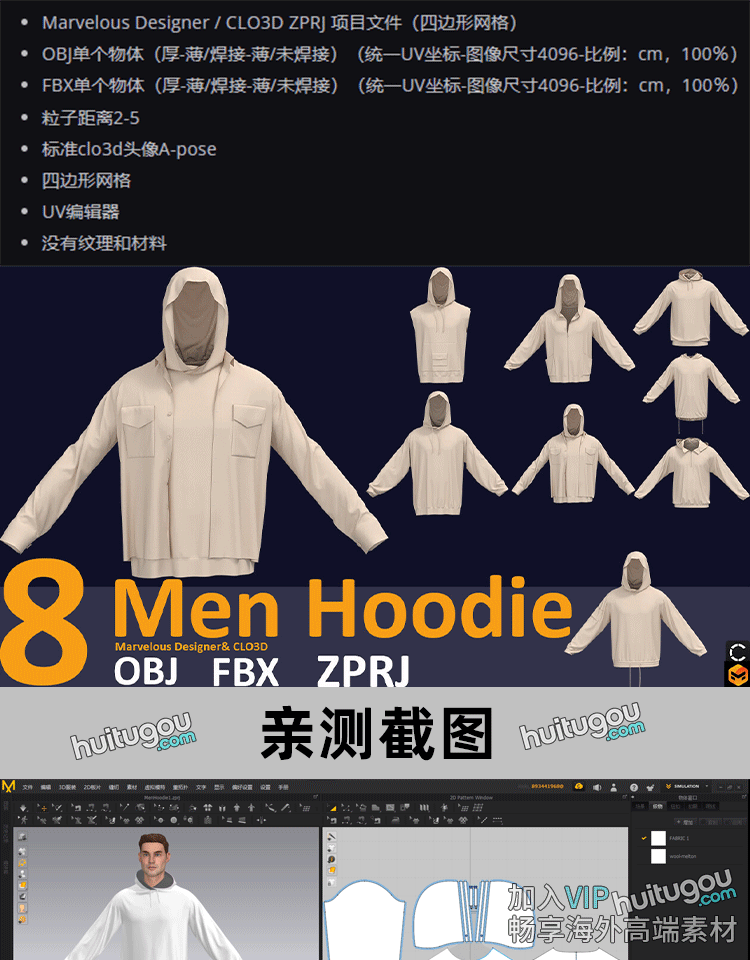 MD服装纸样CLO3D男装连帽衫卫衣版型8款衣服打版设计素材工程文件