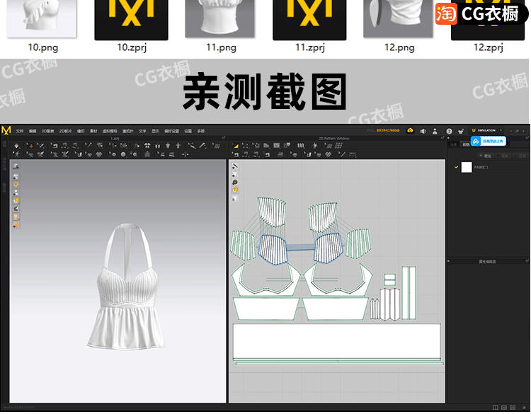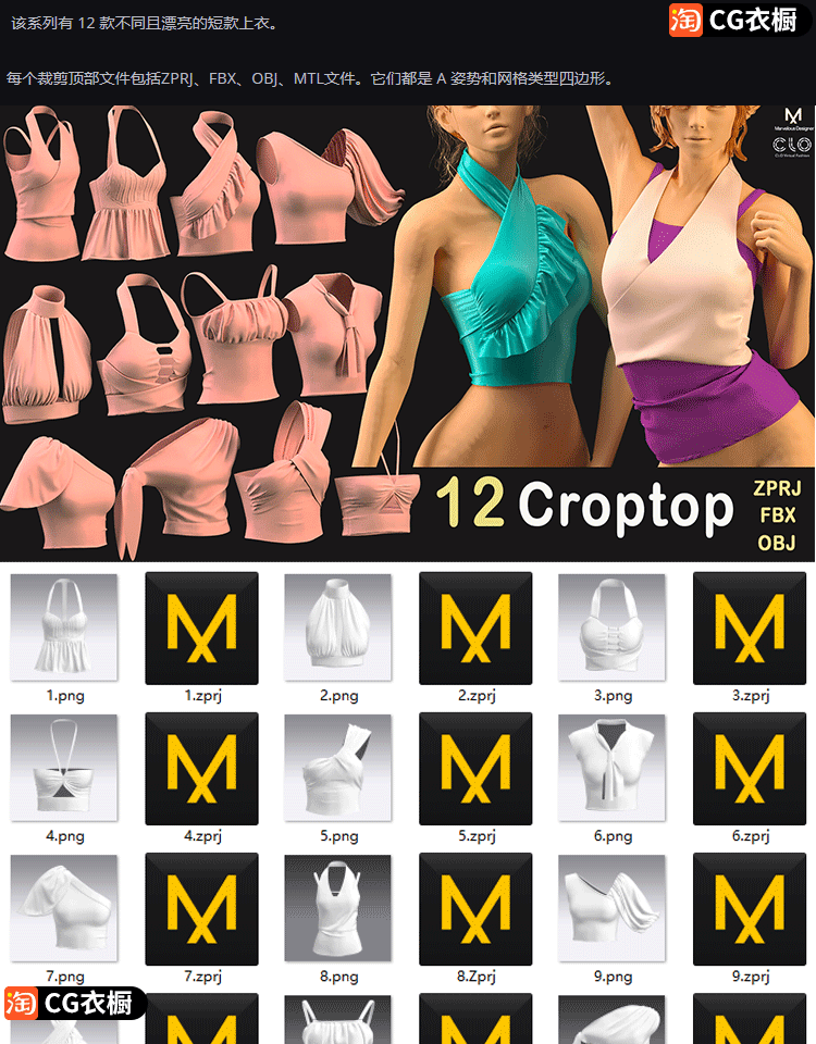 MD素材文件CLO3D露脐短款上衣胸衣吊带抹胸12款服装打版基础版型