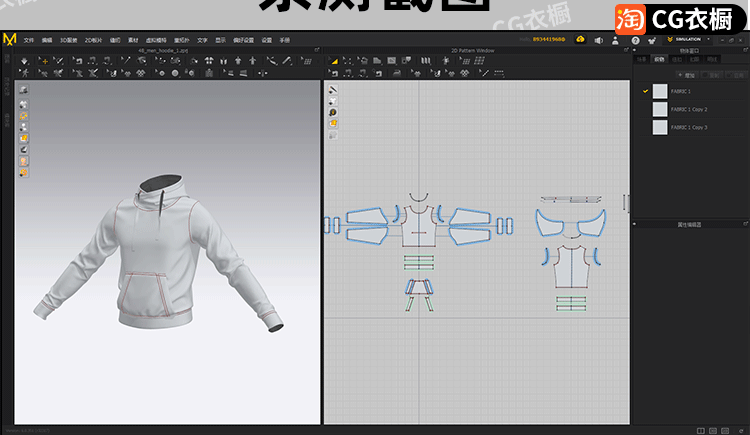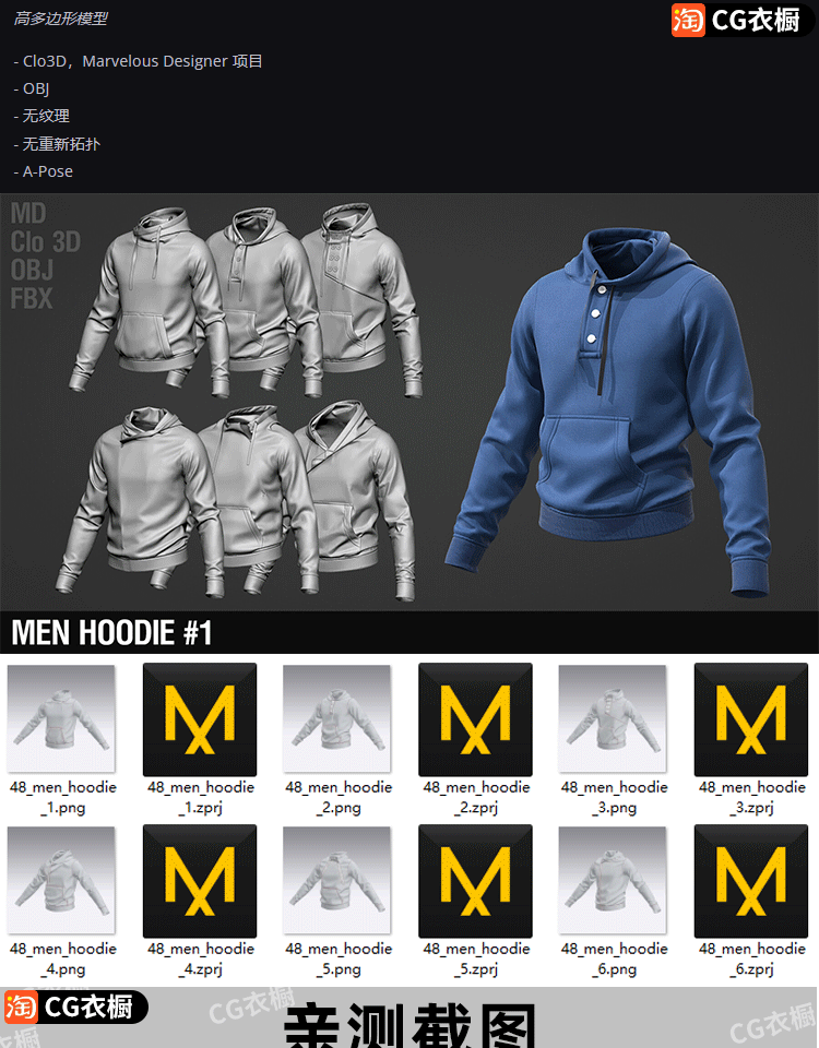 MD素材文件CLO3D男士连帽衫卫衣上衣服装基础版型ZPRJ纸样3D工程