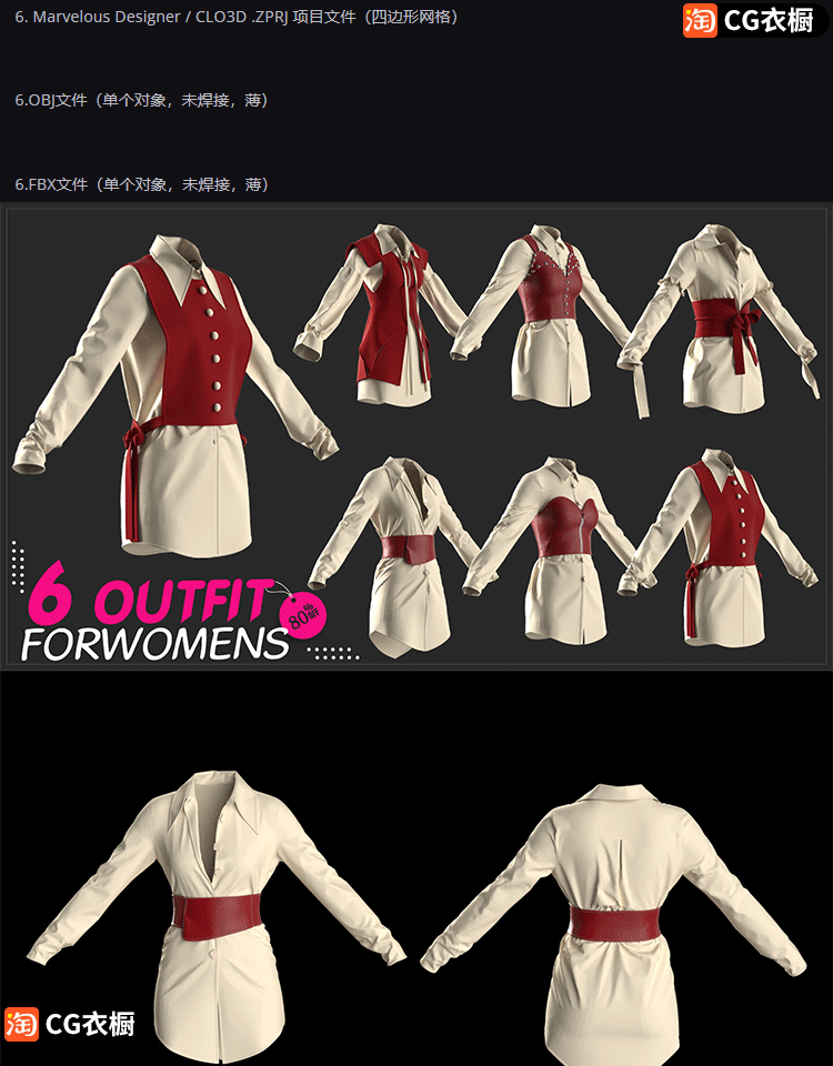 MD衣服模型CLO3D女装女式衬衫上衣6款CLO服装打版设计工程源文件
