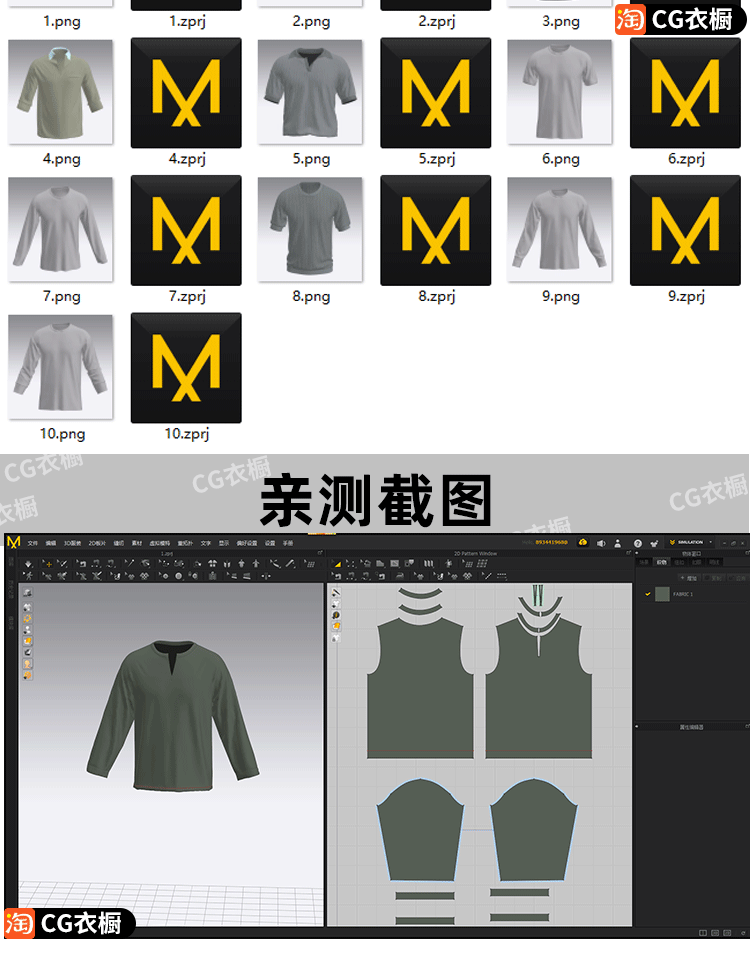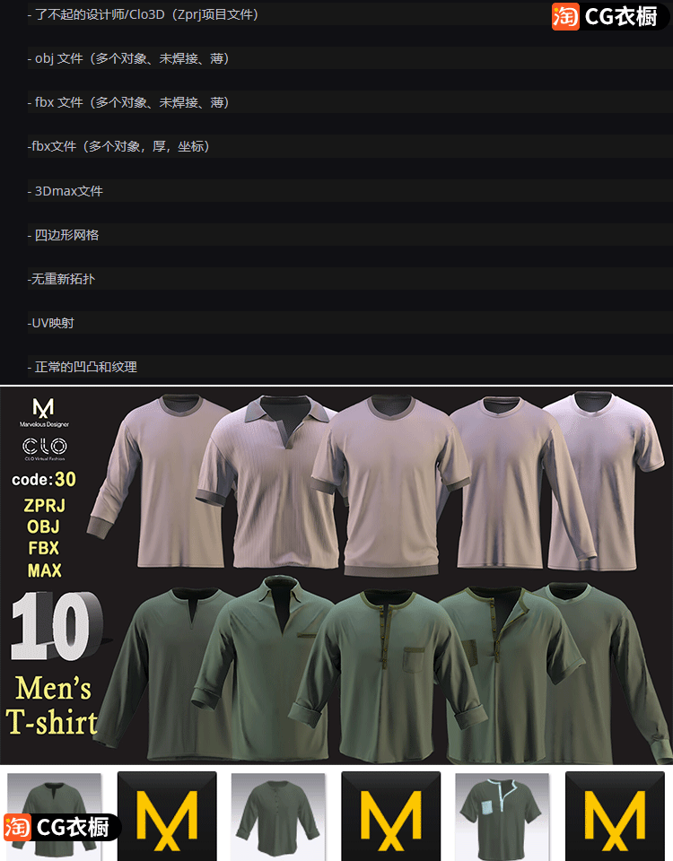 CLO3D服装模型MD衣服10款男士长袖短袖T恤CLO纸样工程文件3D素材
