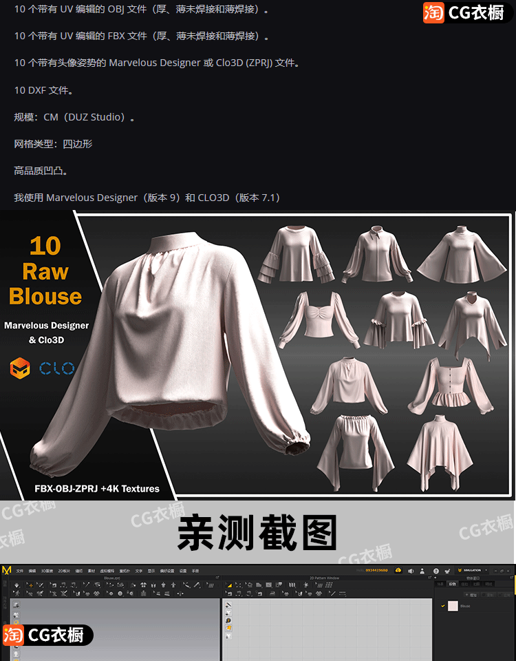 CLO3D/MD模型素材10款女式衬衫上衣服基础版型ZPRJ纸样工程源文件