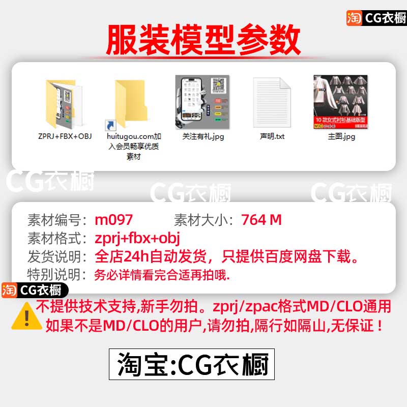MD服装模型CLO3D衣服29款女式上衣T恤基础版型ZPRJ纸样3D工程文件