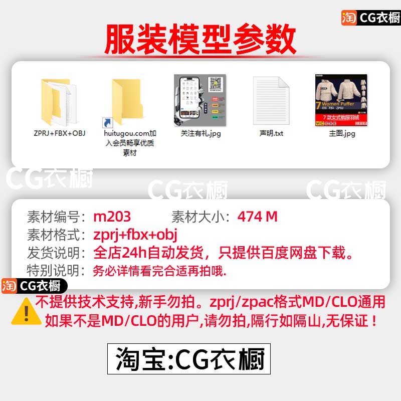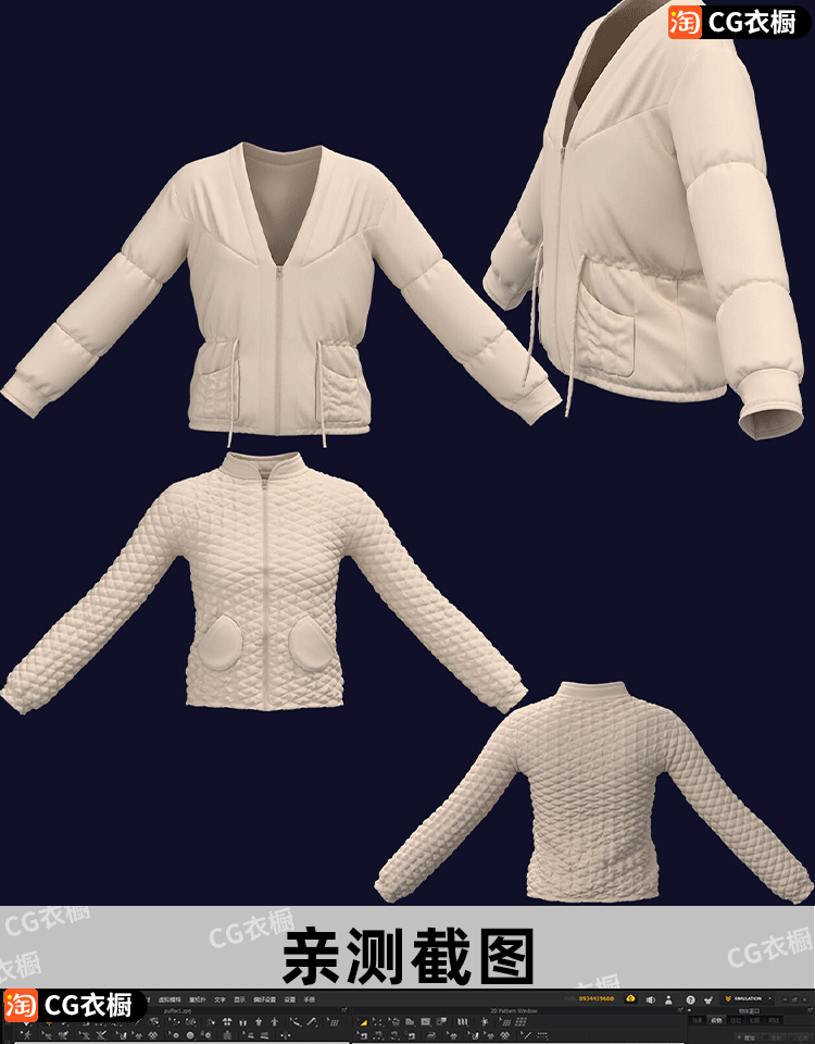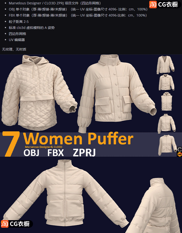MD/CLO3D衣服素材7款女式棉服羽绒棉衣冬装上衣ZPRJ工程基础版型