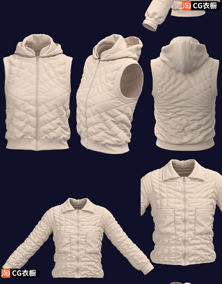 MD/CLO3D衣服素材7款女式羽绒棉服冬装女装厚外套ZPRJ工程3D模型