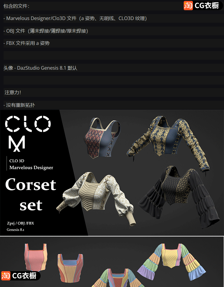 MD模型CLO3D衣服素材紧身束腰胸衣套装女装服装打版ZPRJ工程文件
