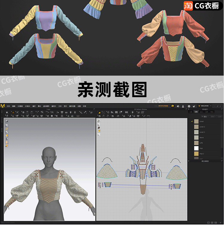 MD模型CLO3D衣服素材古典紧身胸衣套装女装上衣ZPRJ纸样工程文件