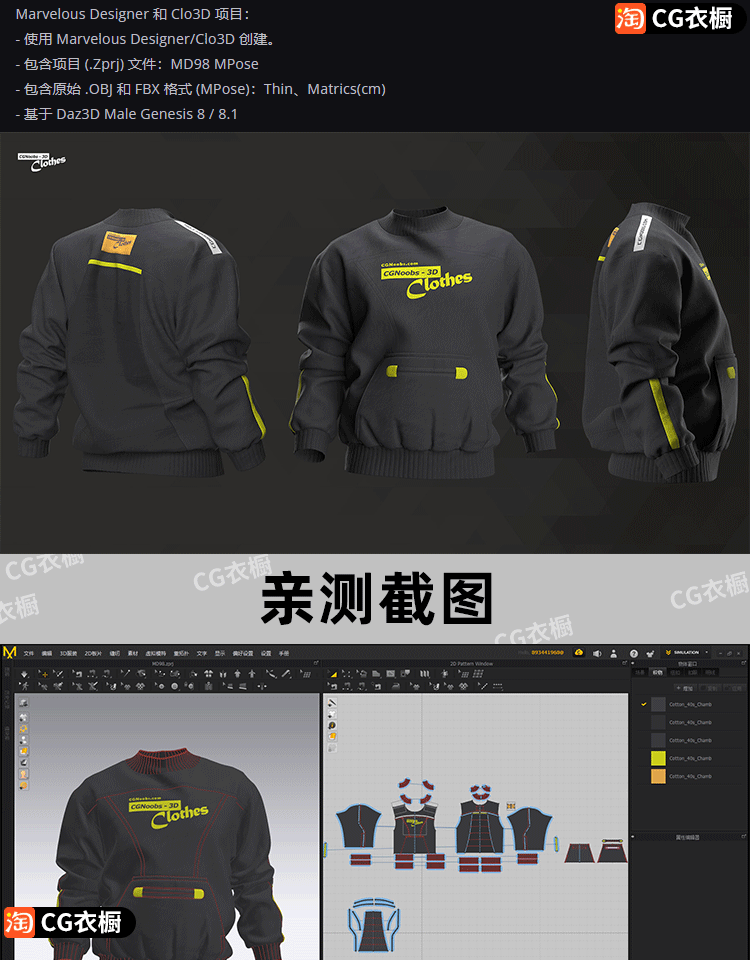 MD模型CLO衣服素材男士运动夹克卫衣棉衣男装服装ZPRJ纸样工程