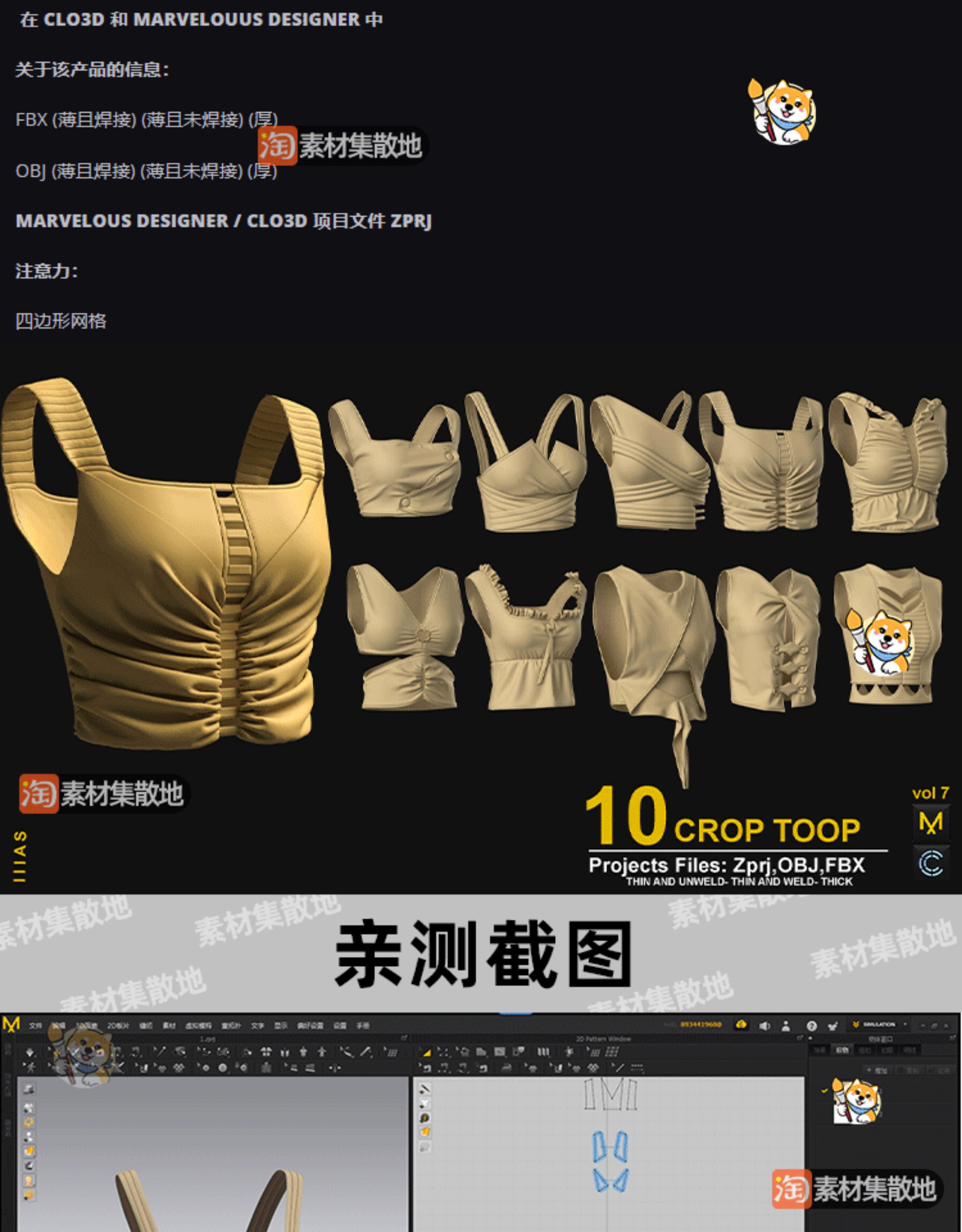 clo3d/md短款上衣内衣3D服装女性胸衣套装ZPRJ模型打版工程源文件