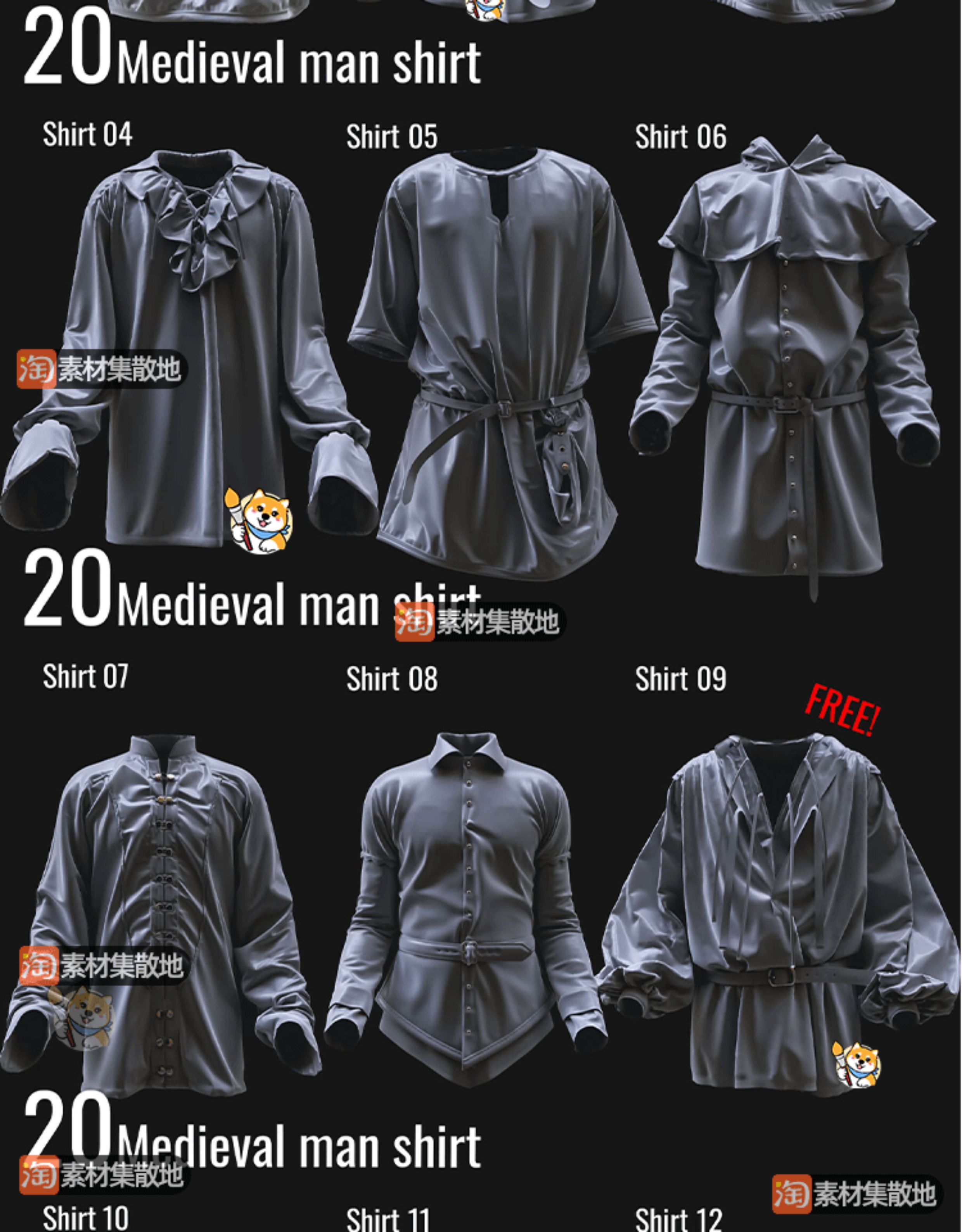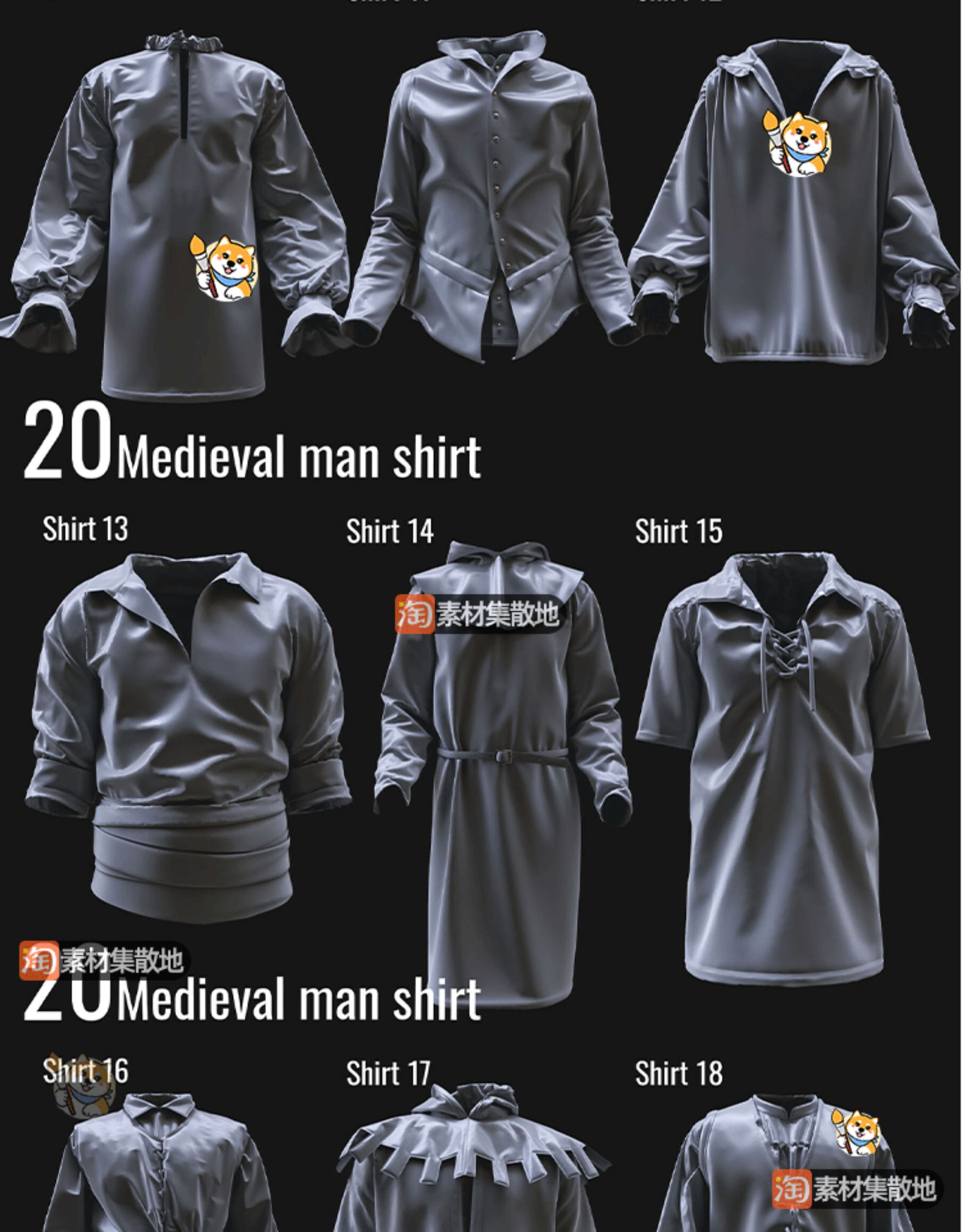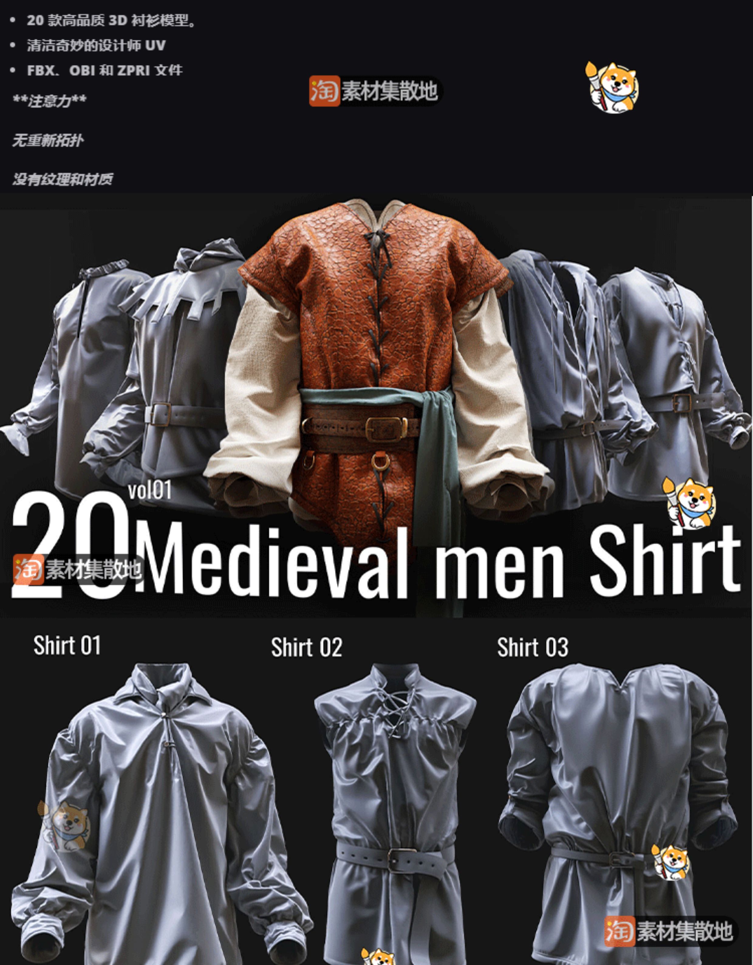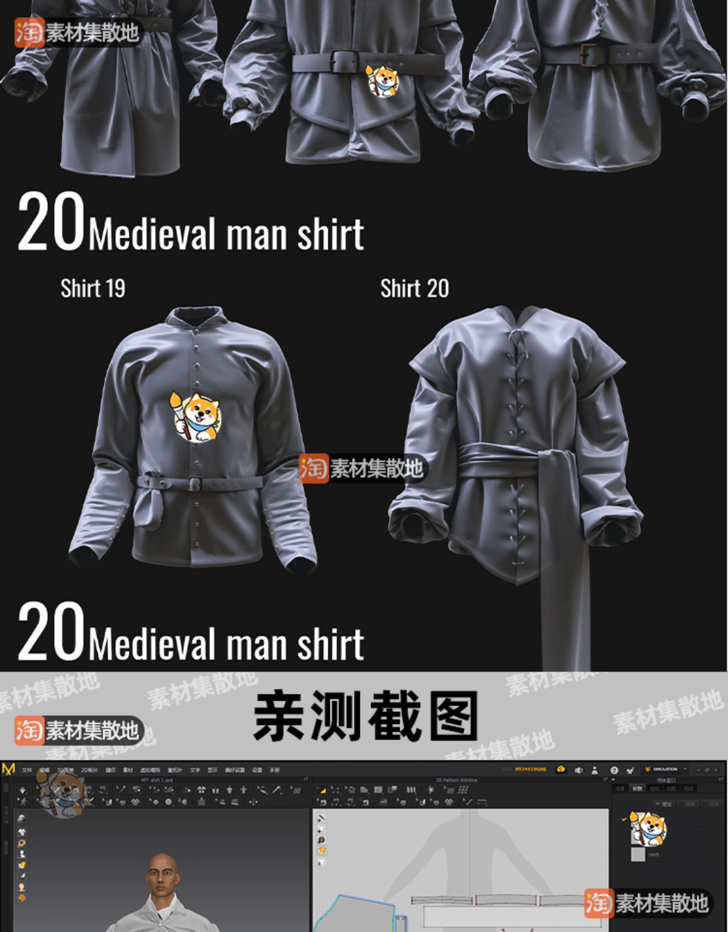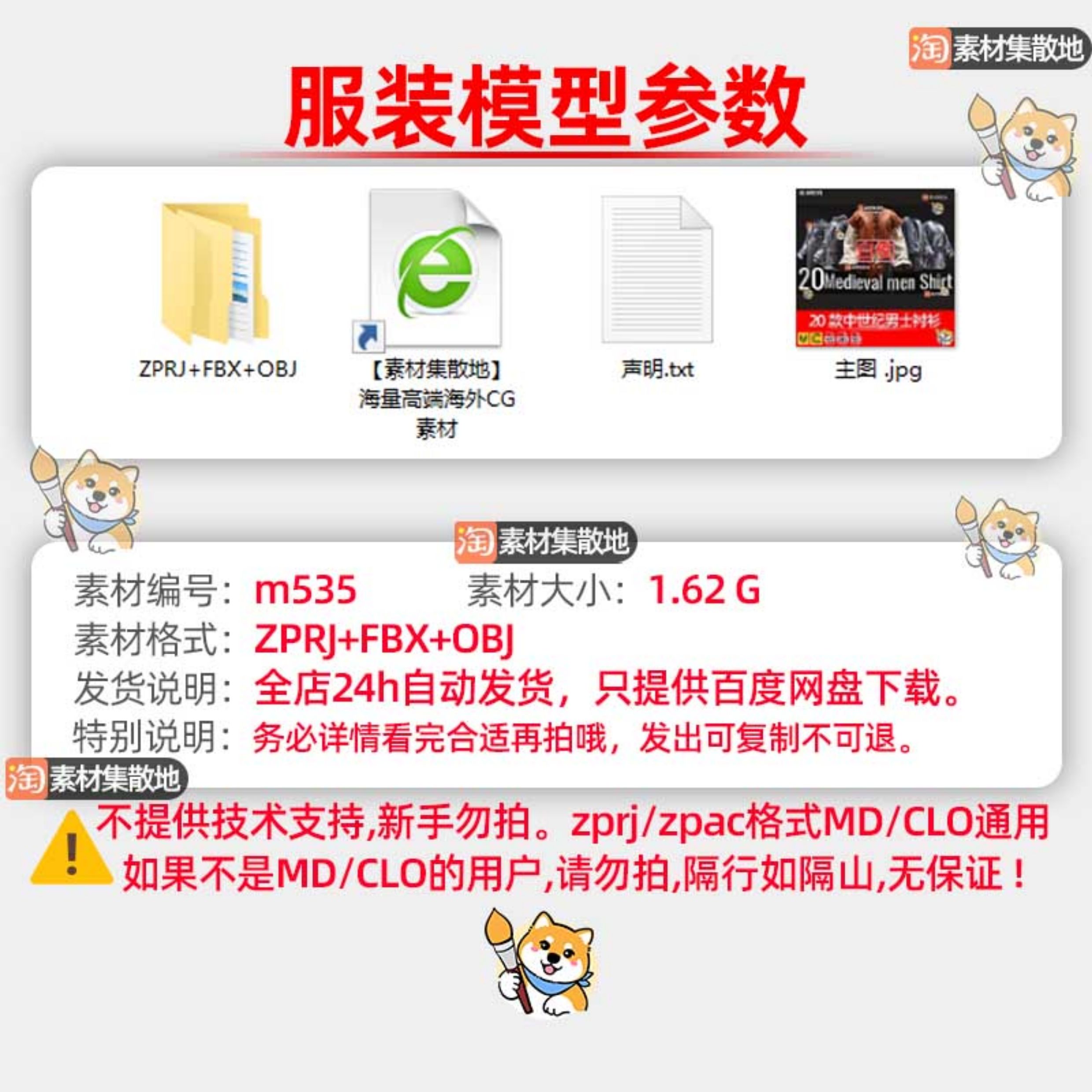 20款中世纪男士衬衫clo3d服装复古衬衣上衣套装ZPRJ模型打版文件