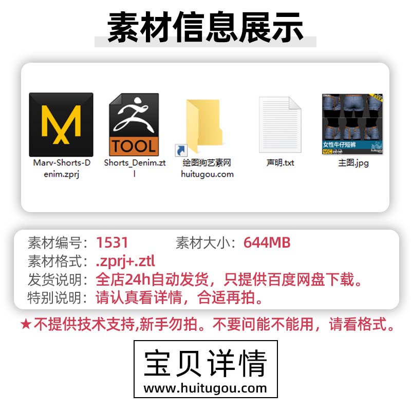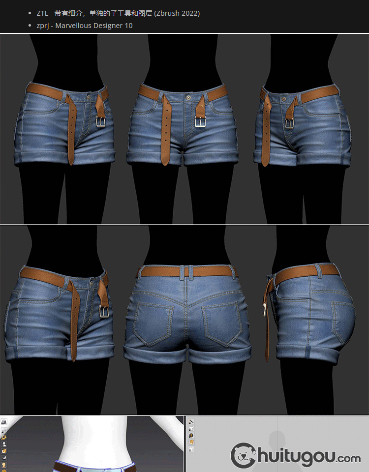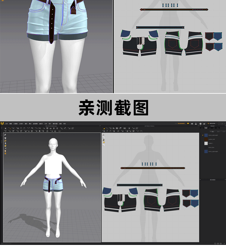 MD Clo3D女性时尚休闲牛仔短裤zprj服装打版源文件 附ztl格式素材