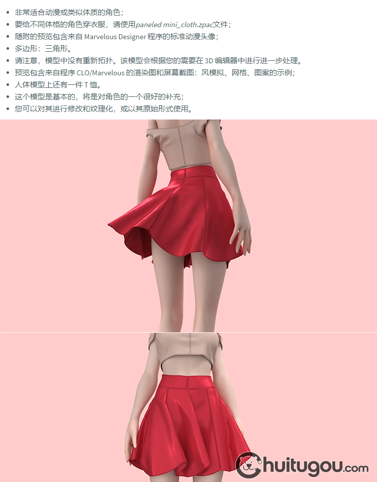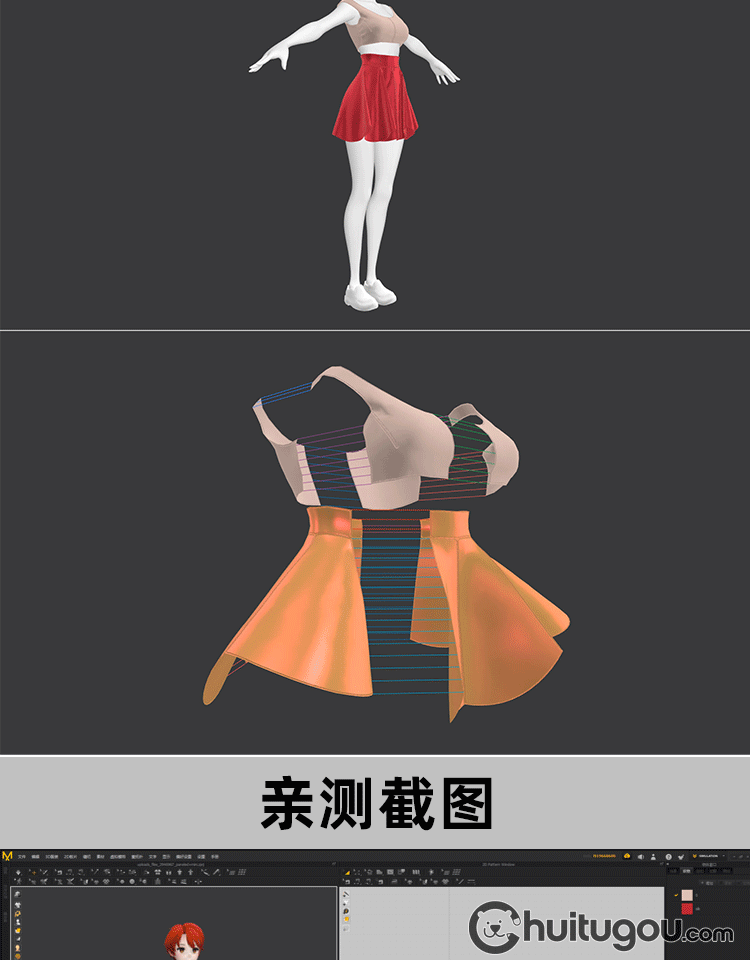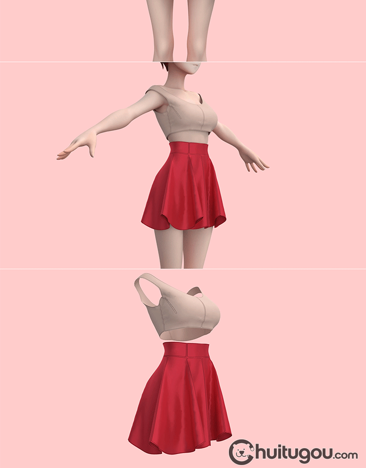 Marvelous Designer可爱时尚女孩短裙子MD服装3D模型obj/c4d/八猴