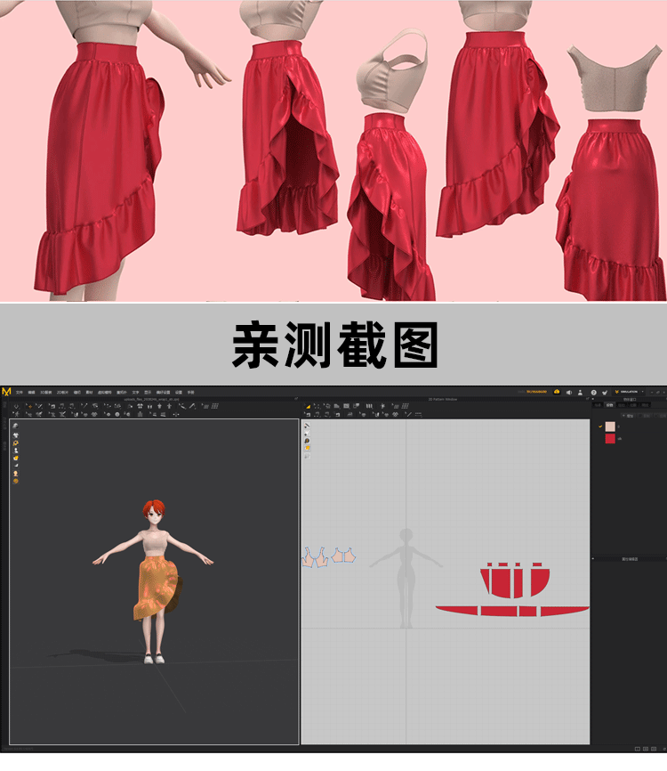 Marvelous Designer可爱女孩花边裙子Clo3d服装MD打版工程文件obj