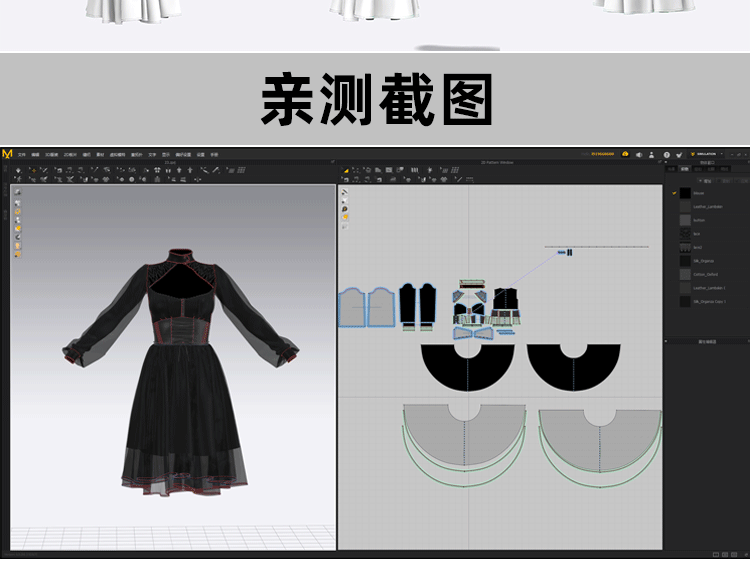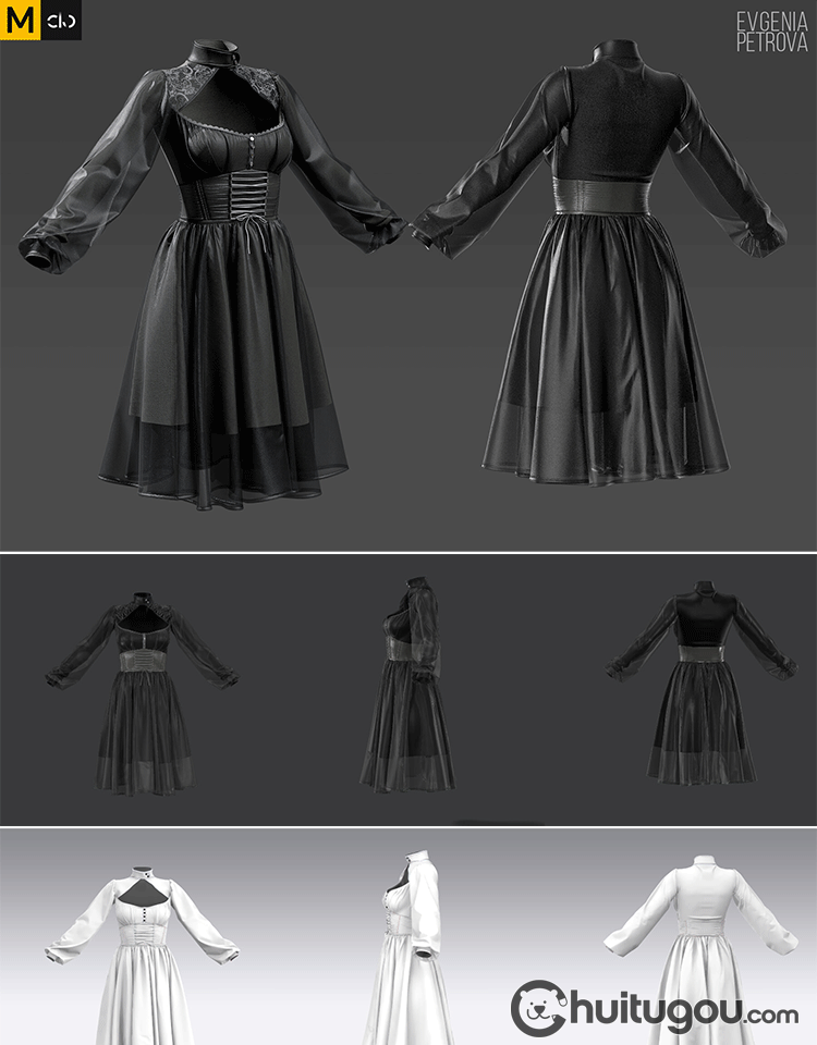 MD Clo3d暗黑蕾丝礼服连衣裙zprj模型服装设计打版项目工程源文件