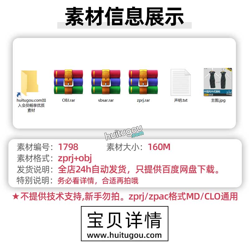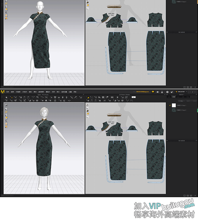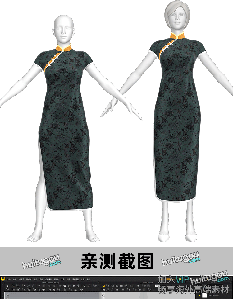 MD服装纸样Clo中国风传统旗袍衣服打版素材zprj工程源文件OBJ模型