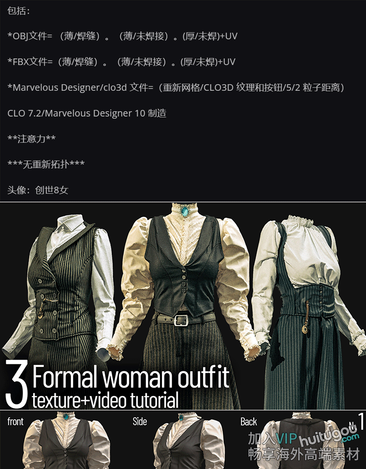 MD/CLO源文件女式外套连体衣女装服装纸样ZPRJ工程3D模型衣服素材