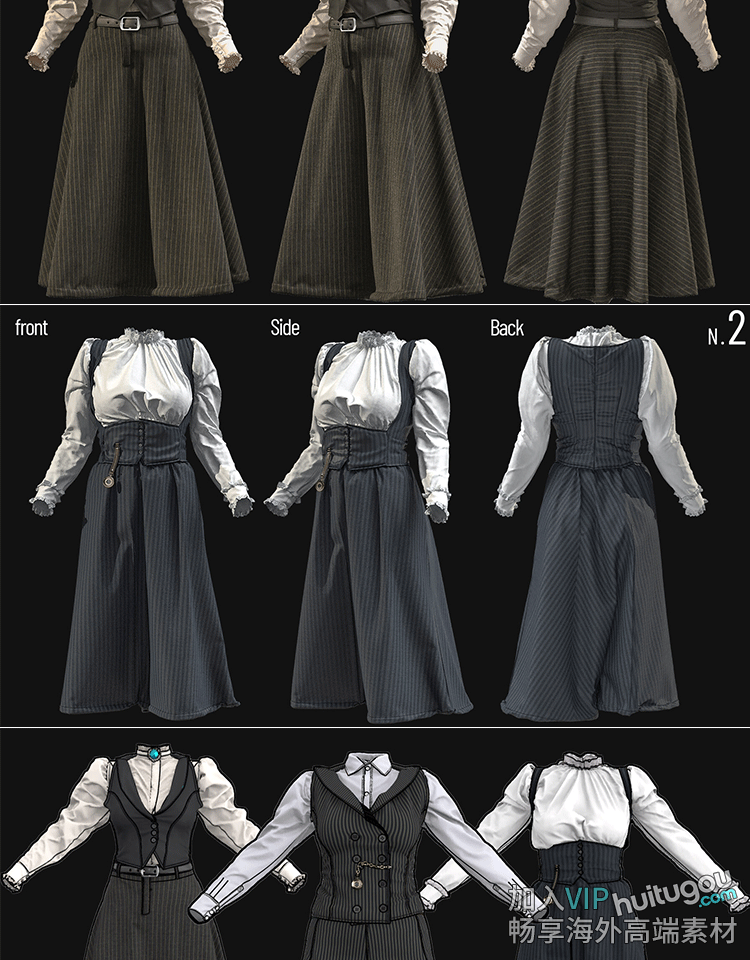 MD服装素材CLO女装复古裙子礼服套装ZPRJ衣服打版设计工程源文件
