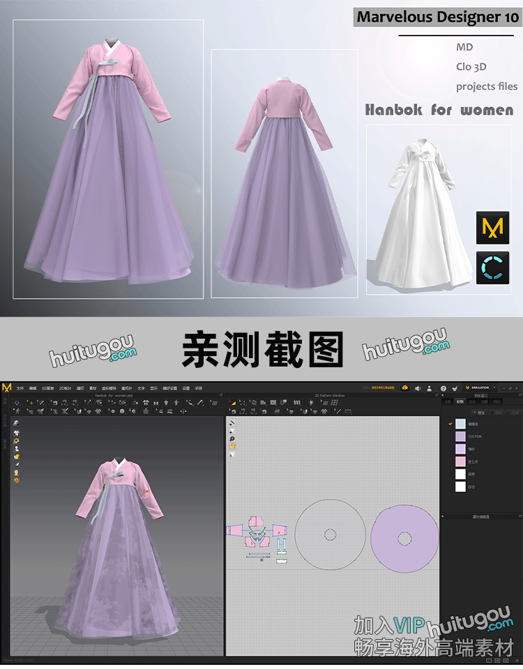 MD衣服素材CLO女士连衣裙纸样ZPRJ裙子韩国服装设计打版工程文件
