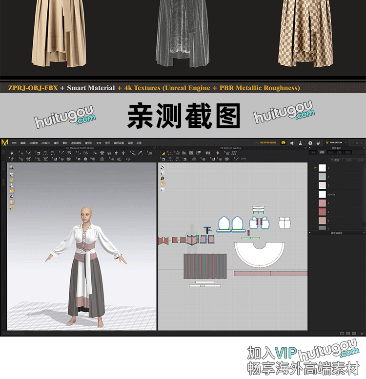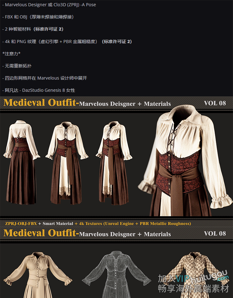 Marvelous Designer中世纪女服装设计打版MD纸样CLO3D工程源文件