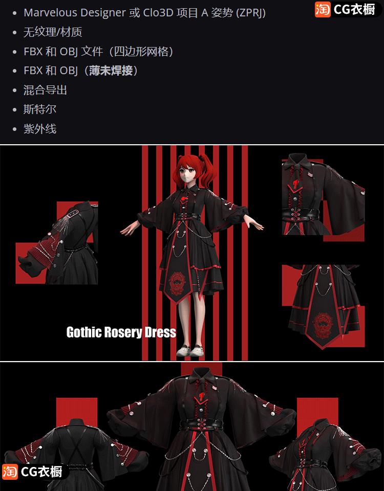CLO3D服装模型裙子MD二次元游戏风格女装CLO衣服打版设计纸样素材