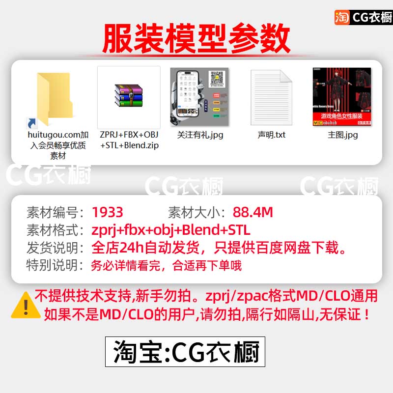 MD衣服纸样模型CLO演出工作服皮衣皮裤皮靴 服装设计打版工程文件