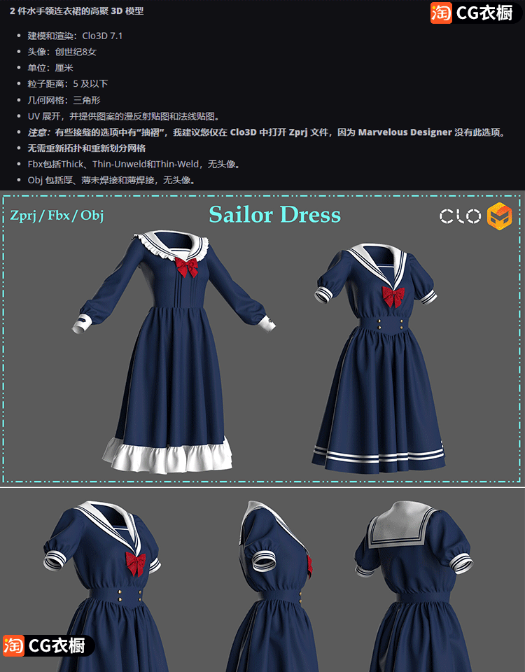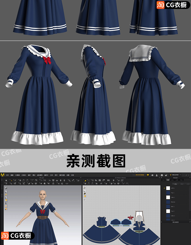 MD服装工程CLO3D水手服女装连衣裙子CLO衣服打版建模设计素材文件