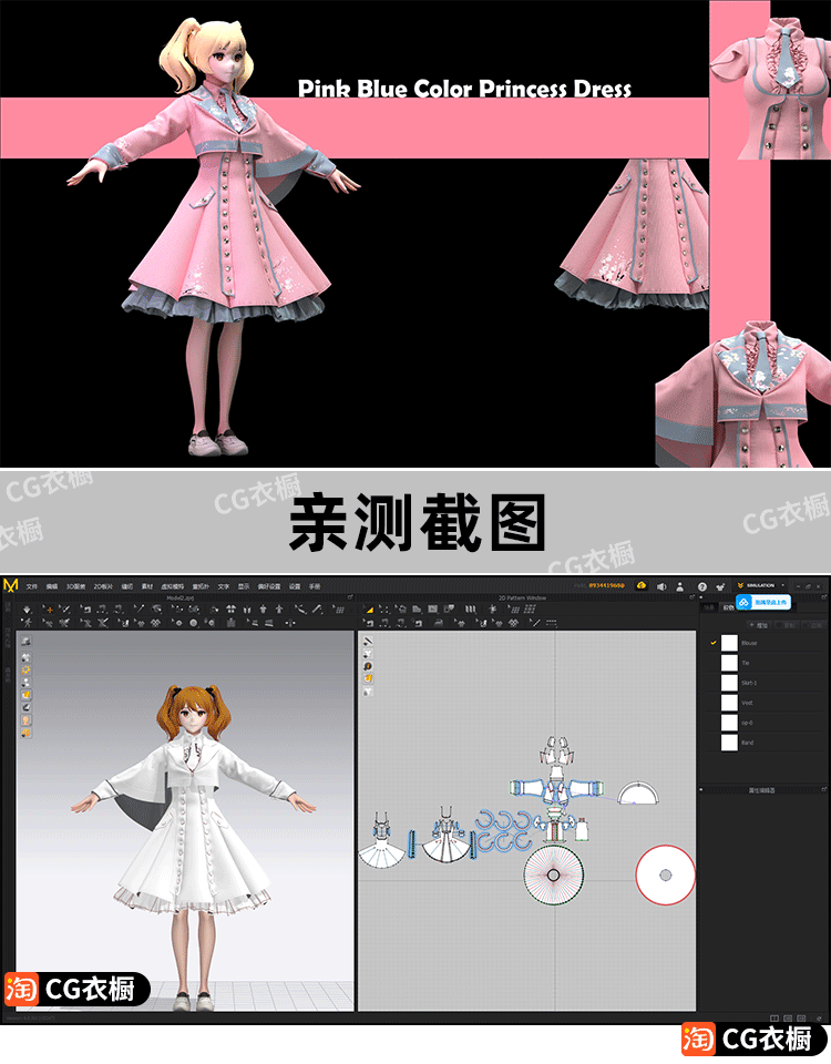 MD服装工程CLO3D性感动漫风格套装CLO虚拟衣服建模打版设计素材
