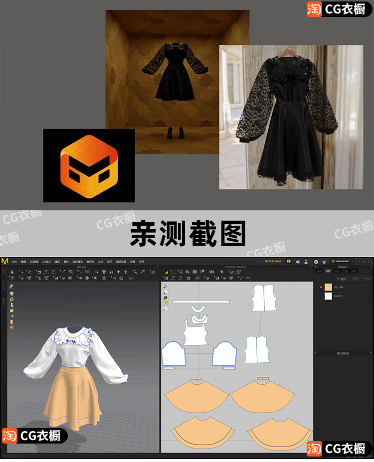 MD服装3D纸样模型CLO3D奢华连衣裙子ZPRJ格式衣服工程文件OBJ素材