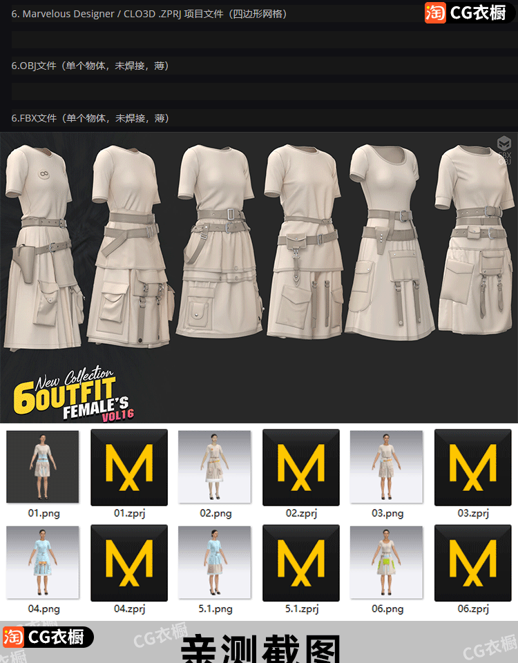 MD服装模板CLO3D素材6款女装连衣裙包臀裙子衣服3D模型ZPRJ工程