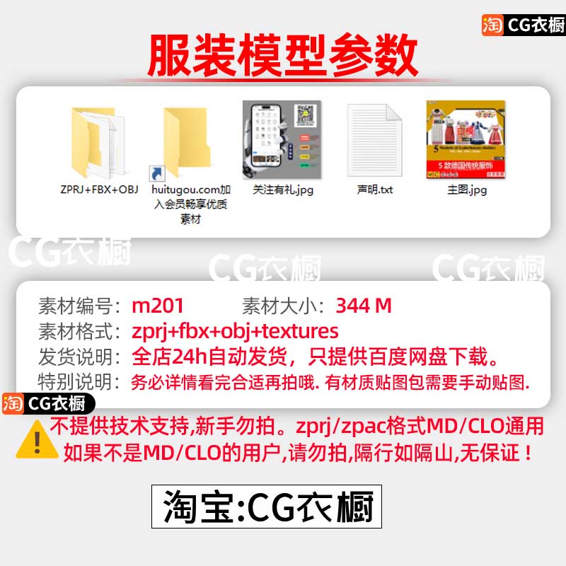 MD模型CLO衣服素材传统民族风格服装女装套装ZPRJ纸样工程源文件