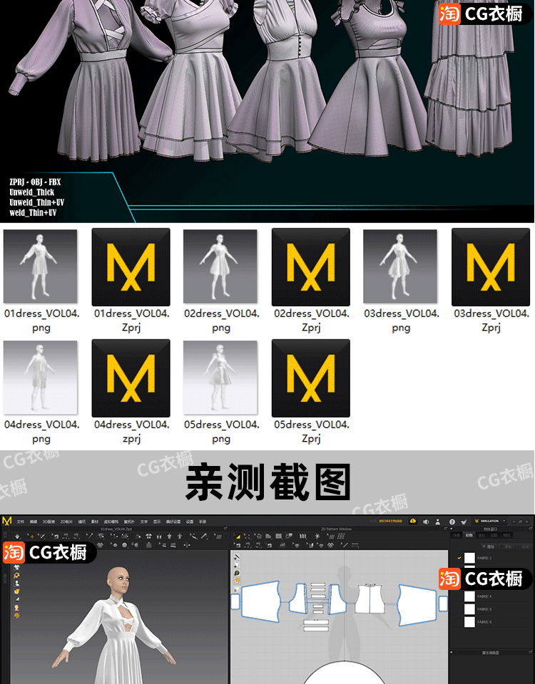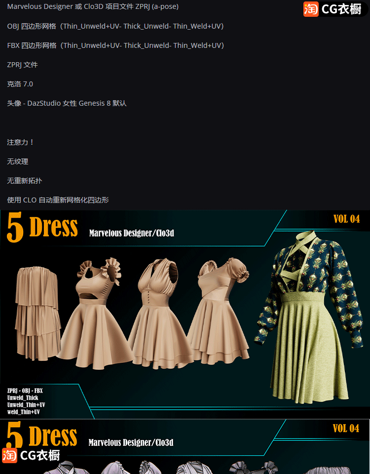 MD/CLO衣服模型5款复古连衣裙子基础版型ZPRJ纸样工程源文件素材