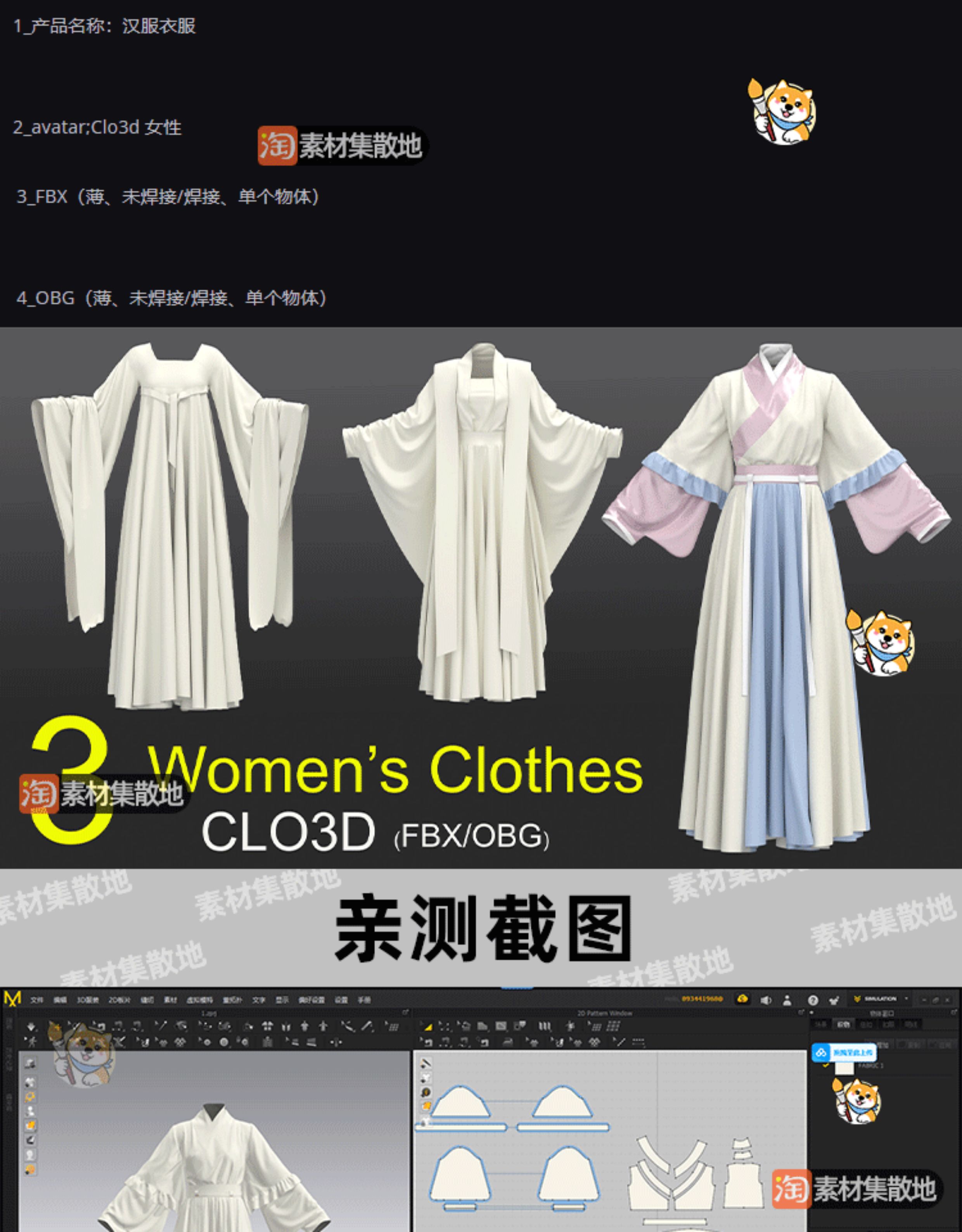 clo/md日式长裙和服3d服装古代女性花纹连衣裙ZPRJ模型打版源文件