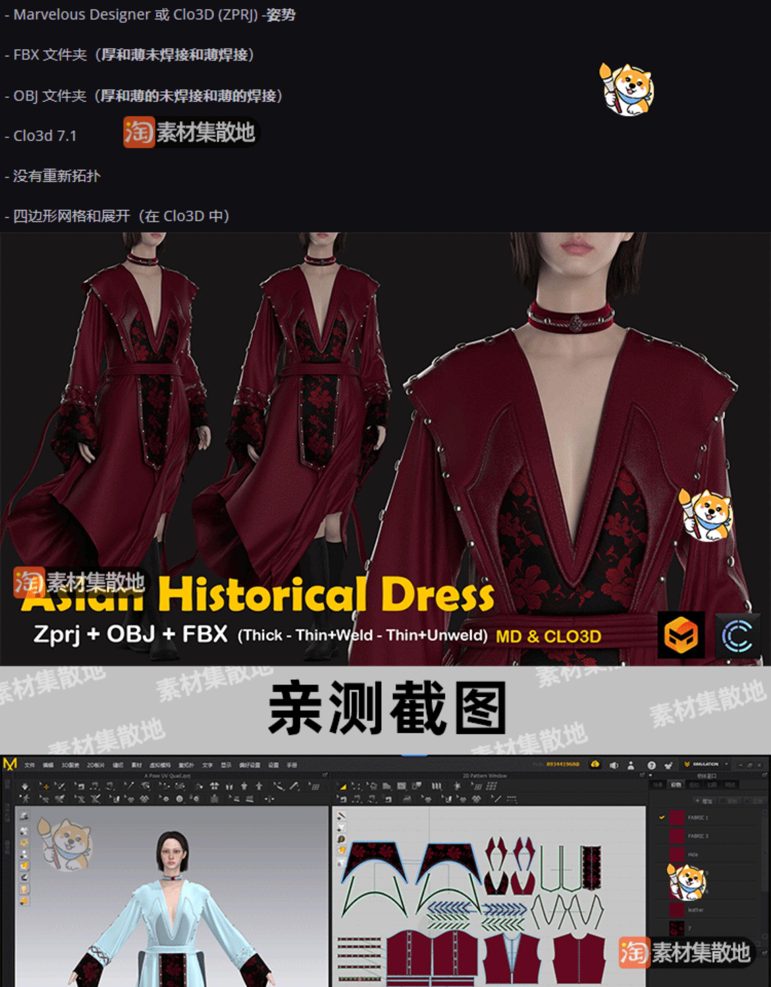 5款clo3d复古埃及连衣裙3D服装女性礼服长裙套装ZPRJ模型打版文件