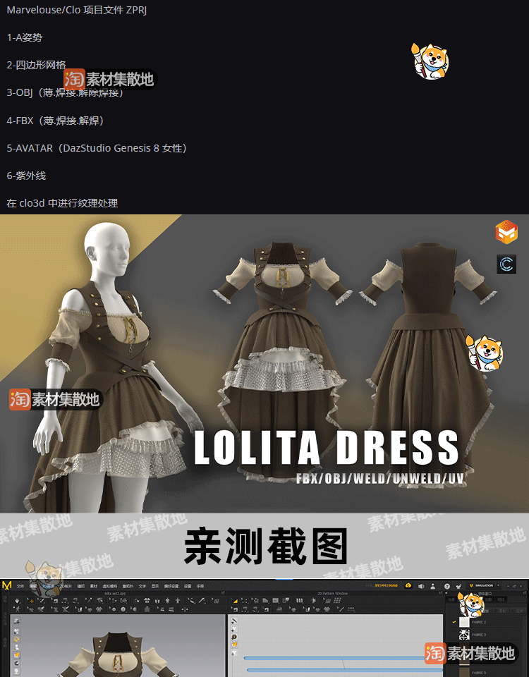 MD服装洛丽塔连衣裙CLO哥特式连衣裙套装ZPRJ模型打版工程源文件